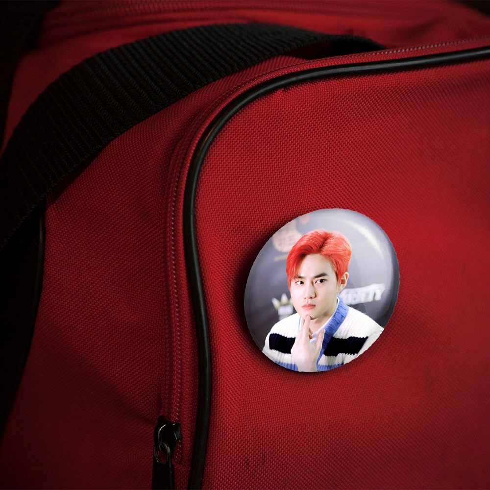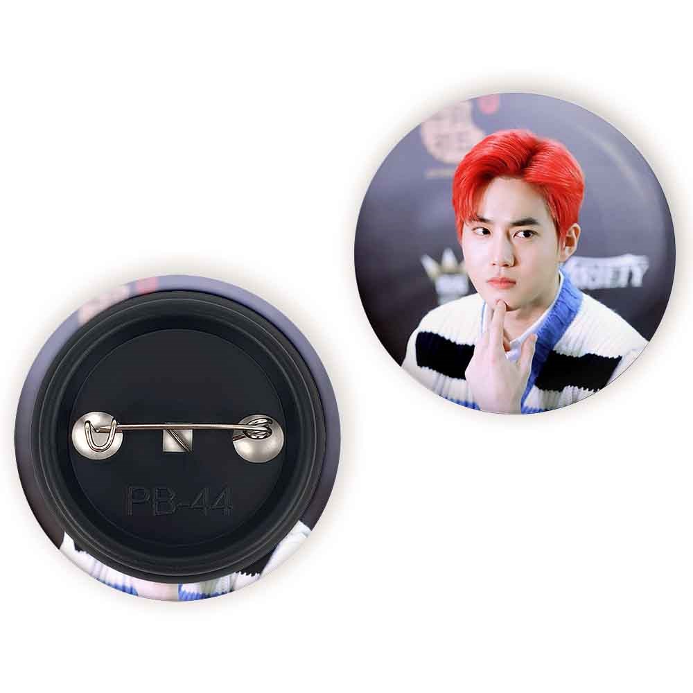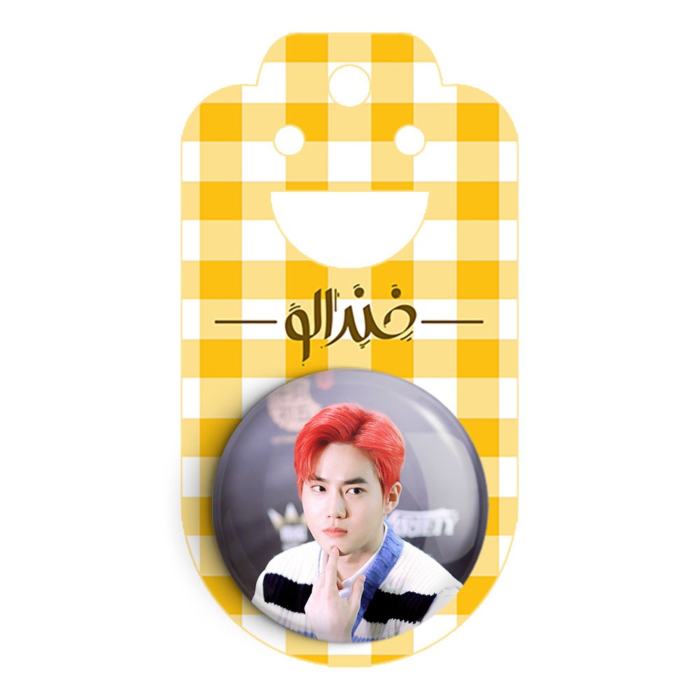 پیکسل 44 میلی متری سوهو گروه اکسو EXO خندالو با روکش سلفون حرارتی مات مخملی ضدخش و قطعه پشتی رنگی تولید شده است.پلاستیکی پشت پیکسل با سوزن یک تکه ثابت و بدون لغزش و جا به جایی، ایستایی بسیار بهتری نسبت به پشتی فلزی پیکسل دارند که این مهم در تولید این محصول نیز رعایت شده است.