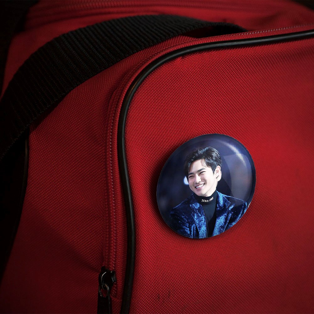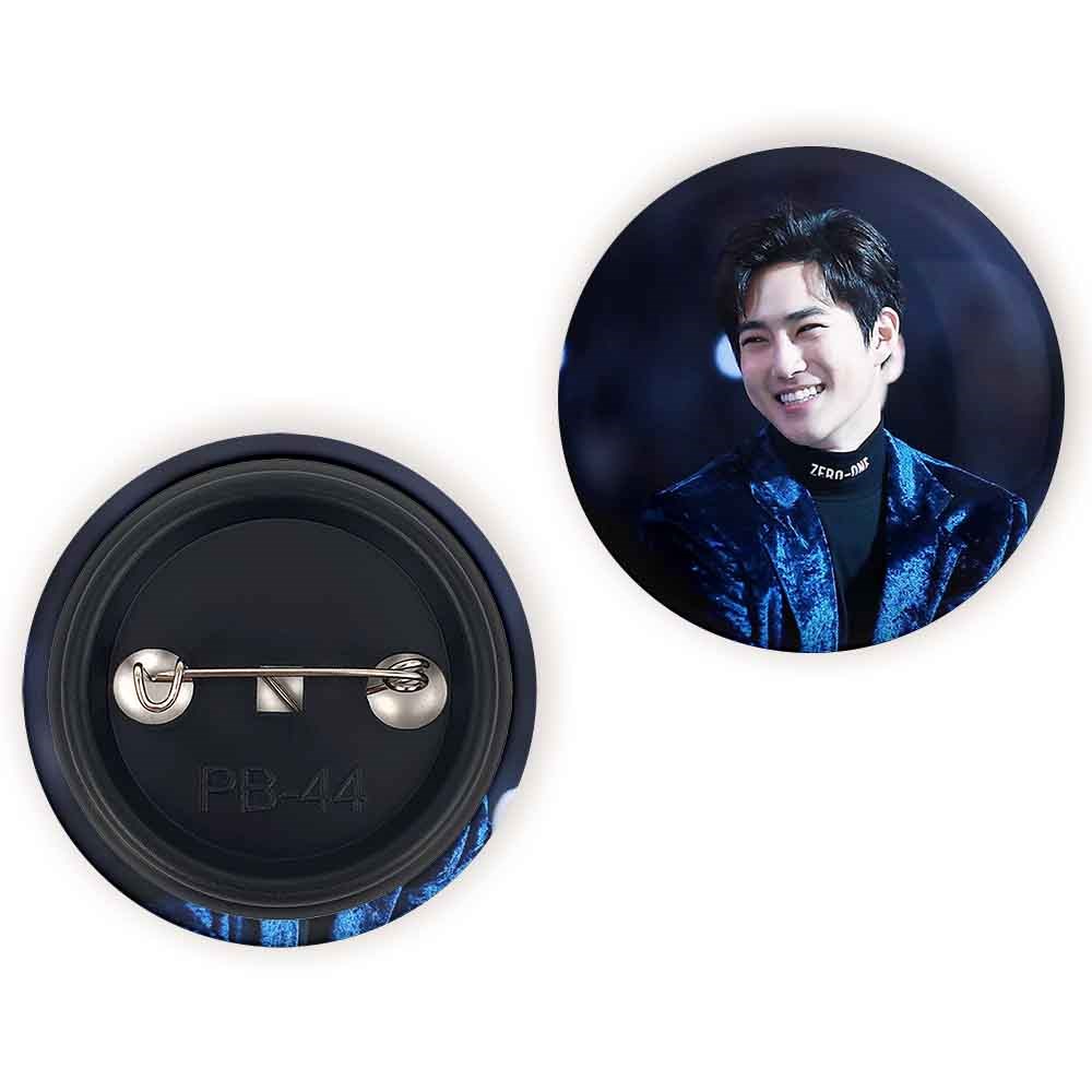 پیکسل 44 میلی متری سوهو گروه اکسو EXO خندالو با روکش سلفون حرارتی مات مخملی ضدخش و قطعه پشتی رنگی تولید شده است.پلاستیکی پشت پیکسل با سوزن یک تکه ثابت و بدون لغزش و جا به جایی، ایستایی بسیار بهتری نسبت به پشتی فلزی پیکسل دارند که این مهم در تولید این محصول نیز رعایت شده است.