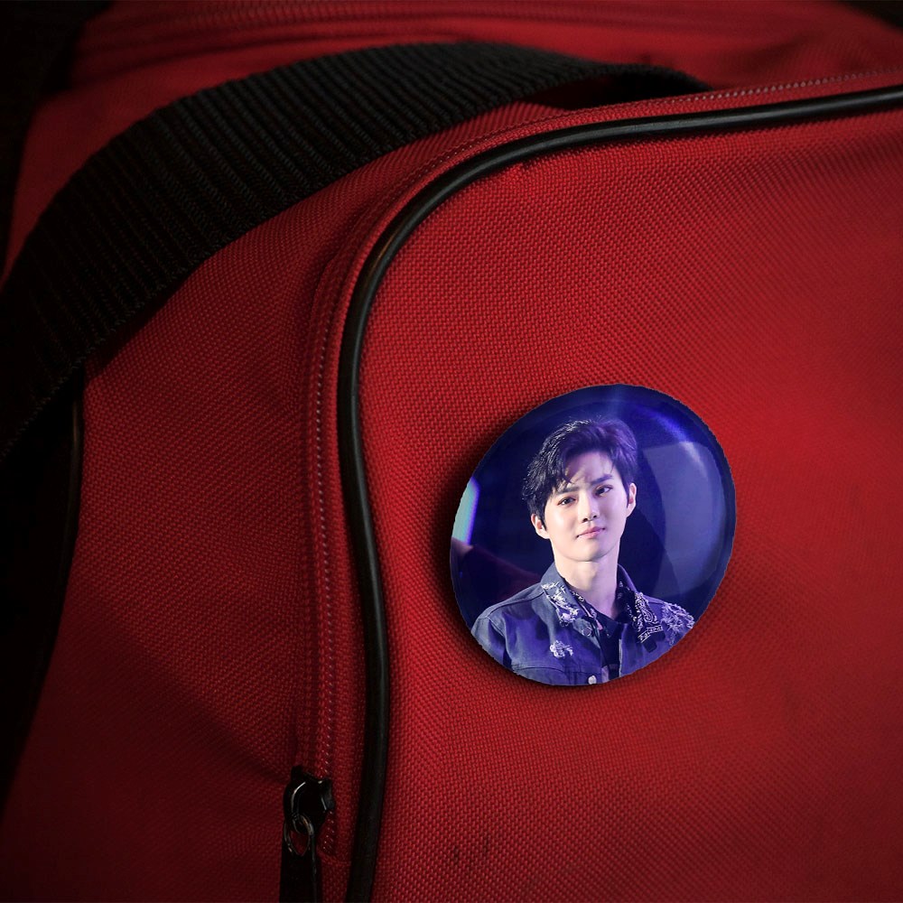پیکسل 44 میلی متری سوهو گروه اکسو EXO خندالو با روکش سلفون حرارتی مات مخملی ضدخش و قطعه پشتی رنگی تولید شده است.پلاستیکی پشت پیکسل با سوزن یک تکه ثابت و بدون لغزش و جا به جایی، ایستایی بسیار بهتری نسبت به پشتی فلزی پیکسل دارند که این مهم در تولید این محصول نیز رعایت شده است.