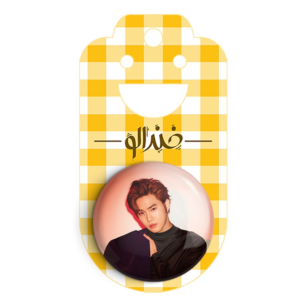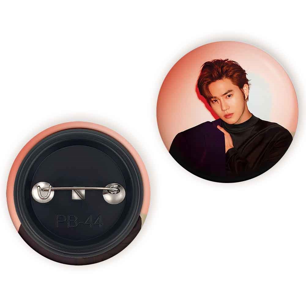 پیکسل 44 میلی متری سوهو گروه اکسو EXO خندالو با روکش سلفون حرارتی مات مخملی ضدخش و قطعه پشتی رنگی تولید شده است.پلاستیکی پشت پیکسل با سوزن یک تکه ثابت و بدون لغزش و جا به جایی، ایستایی بسیار بهتری نسبت به پشتی فلزی پیکسل دارند که این مهم در تولید این محصول نیز رعایت شده است.