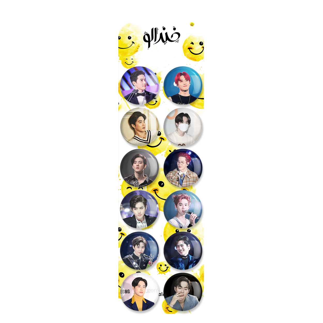 پک 12 عددی پیکسل خندالو طرح سوهو Suho اکسوEXO با روکش سلفون حرارتی براق ضدخش و قطعه پشتی رنگی تولید شده است. قطعات پشتی از میان 6 رنگ سفید، مشکی، صورتی، زرد، آبی و قرمز که با توجه به نوع و رنگبندی طرح روی پیکسل انتخاب شده اند تولید می شود و در هر بسته بندی مطابق عکس محصول می باشد. قطعات پلاستیکی پشت پیکسل با سوزن یک تکه ثابت و بدون لغزش و جا به جایی، ایستایی بسیار بهتری نسبت به پشتی فلزی پیکسل دارند که این مهم در تولید این محصول نیز رعایت شده است. چاپ پیکسل طرح سوهو Suho اکسوEXO بسته ۱۲ عددی نیز با دستگاه های استاندارد و با بهترین سطح کیفی صورت گرفته و طرح با شفافیتی مثال زدنی و با سلفونی بدون شکست نور بر روی پیکسل نقش بسته است.