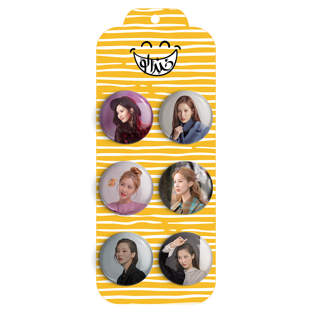 مجموعه 6 عددی پیکسل خندالو طرح سوهیون گرلز جنریشن (Girls Genration) با روکش سلفون حرارتی براق ضدخش و قطعه پشتی رنگی تولید شده است. قطعات پشتی از میان 6 رنگ سفید، مشکی، صورتی، زرد، آبی و قرمز که با توجه به نوع و رنگبندی طرح روی پیکسل انتخاب شده اند تولید می شود و در هر بسته بندی مطابق عکس محصول می باشد. قطعات پلاستیکی پشت پیکسل با سوزن یک تکه ثابت و بدون لغزش و جا به جایی، ایستایی بسیار بهتری نسبت به پشتی فلزی پیکسل دارند که این مهم در تولید این محصول نیز رعایت شده است. چاپ پیکسل نیز با دستگاه های استاندارد و با بهترین سطح کیفی صورت گرفته و طرح با شفافیتی مثال زدنی و با سلفونی بدون شکست نور بر روی پیکسل نقش بسته است. همچنین بسته بندی جذاب و مینیمال پیکسل ها، آنها را مناسب هدیه کرده است..