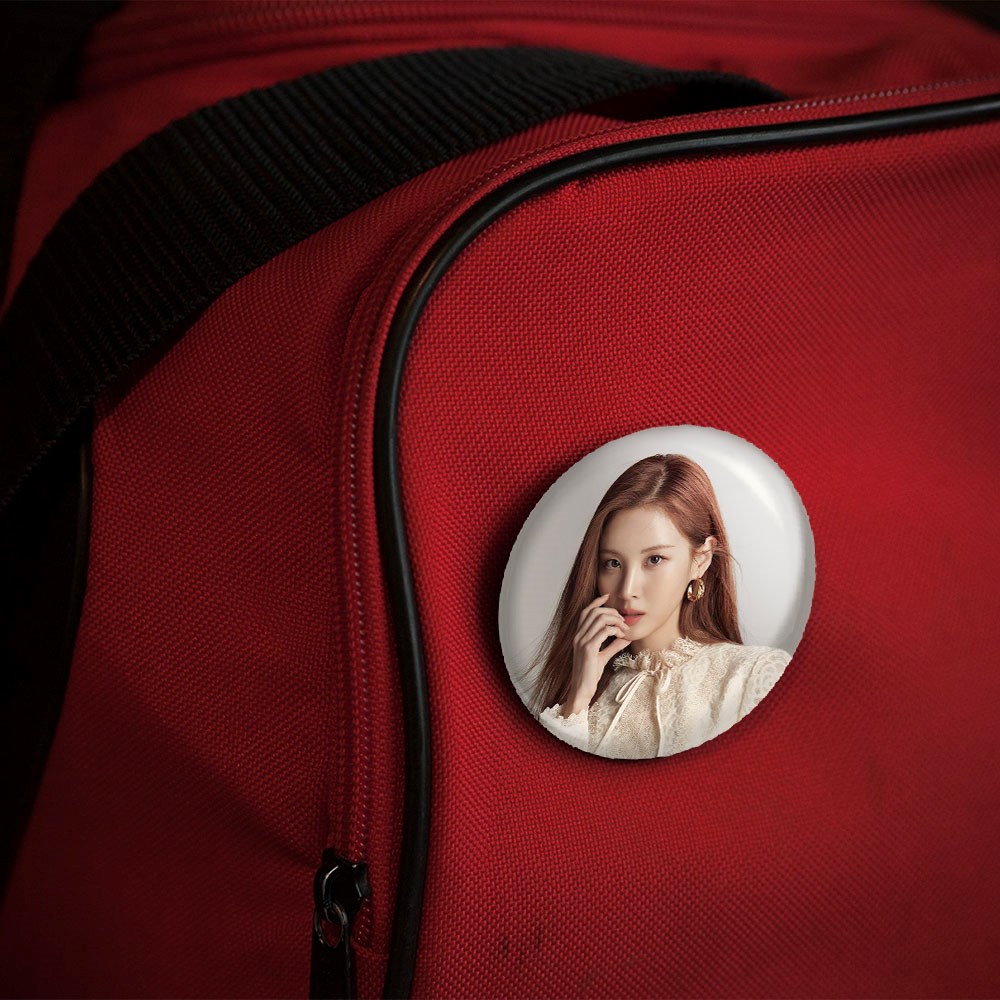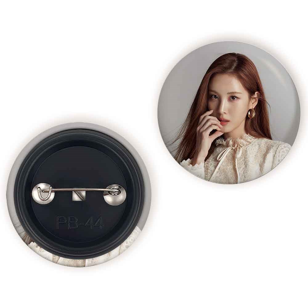 پیکسل 44 میلی متری سوهیون گروه گرلز جنریشن Girls Generation خندالو با روکش سلفون حرارتی مات مخملی ضدخش و قطعه پشتی رنگی تولید شده است.پلاستیکی پشت پیکسل با سوزن یک تکه ثابت و بدون لغزش و جا به جایی، ایستایی بسیار بهتری نسبت به پشتی فلزی پیکسل دارند که این مهم در تولید این محصول نیز رعایت شده است.