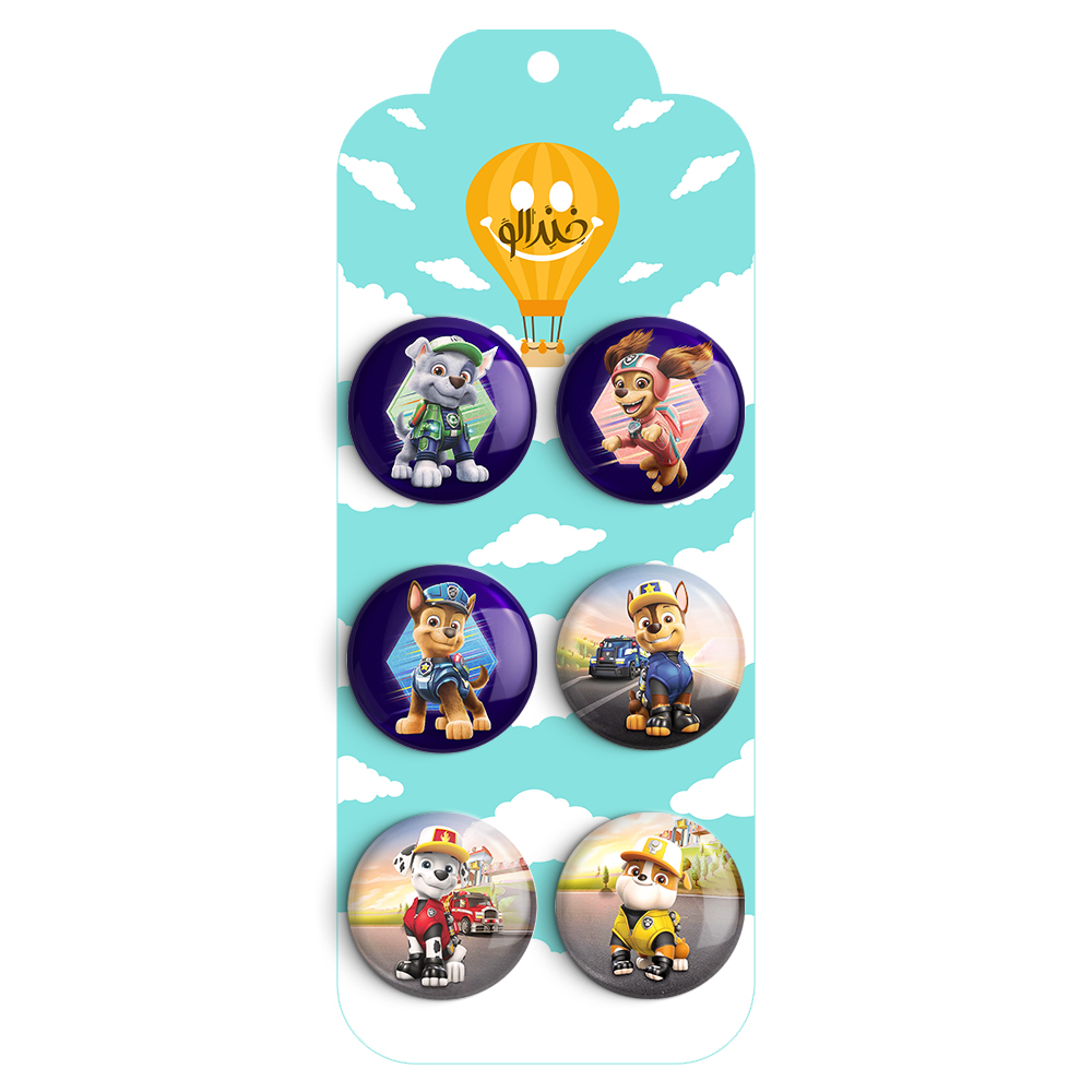 مجموعه 6 عددی پیکسل خندالو طرح سگ های نگهبان (PAW Patrol) با روکش سلفون حرارتی براق ضدخش و قطعه پشتی رنگی تولید شده است. قطعات پشتی از میان 6 رنگ سفید، مشکی، صورتی، زرد، آبی و قرمز که با توجه به نوع و رنگبندی طرح روی پیکسل انتخاب شده اند تولید می شود و در هر بسته بندی مطابق عکس محصول می باشد.