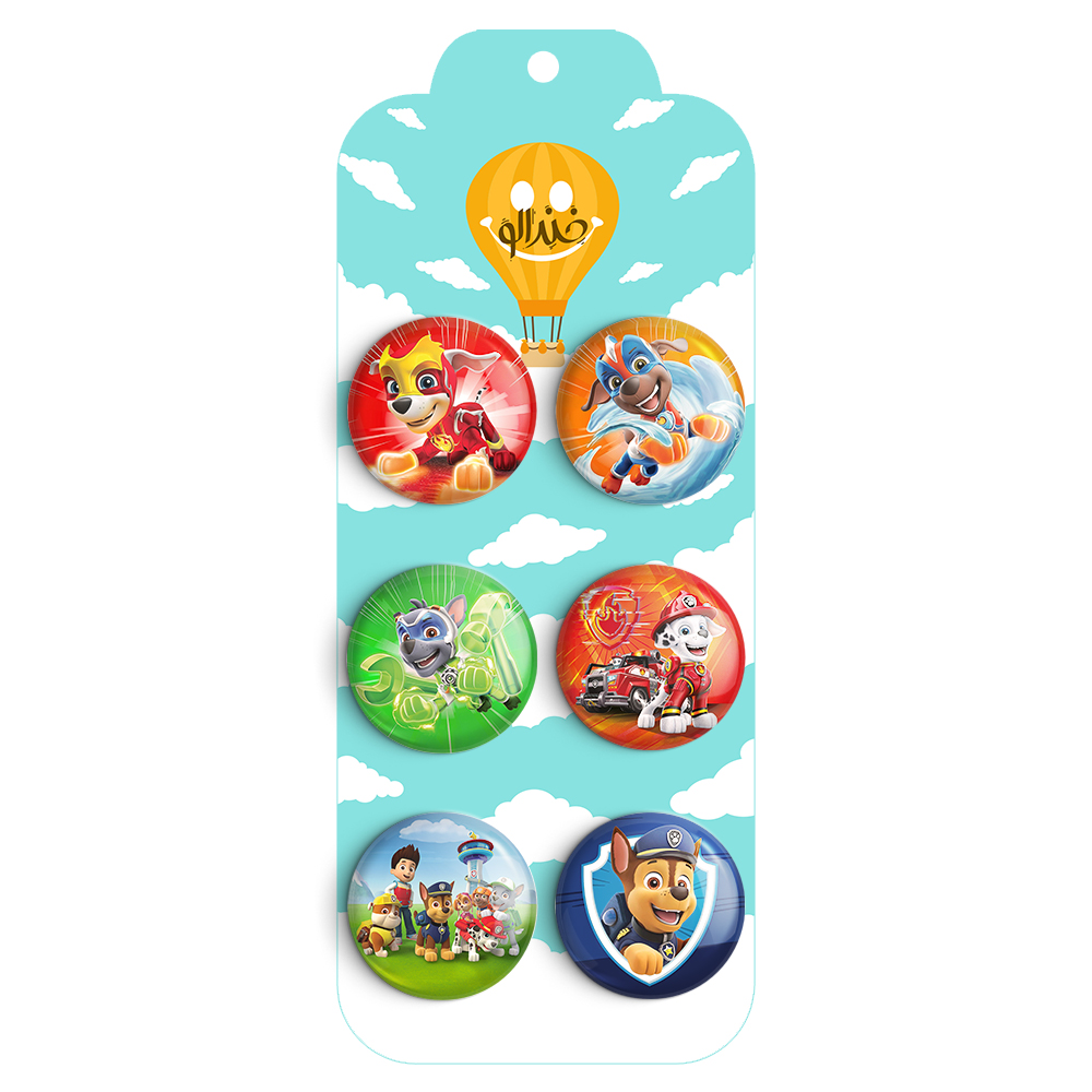 مجموعه 6 عددی پیکسل خندالو طرح سگ های نگهبان (PAW Patrol) با روکش سلفون حرارتی براق ضدخش و قطعه پشتی رنگی تولید شده است. قطعات پشتی از میان 6 رنگ سفید، مشکی، صورتی، زرد، آبی و قرمز که با توجه به نوع و رنگبندی طرح روی پیکسل انتخاب شده اند تولید می شود و در هر بسته بندی مطابق عکس محصول می باشد.