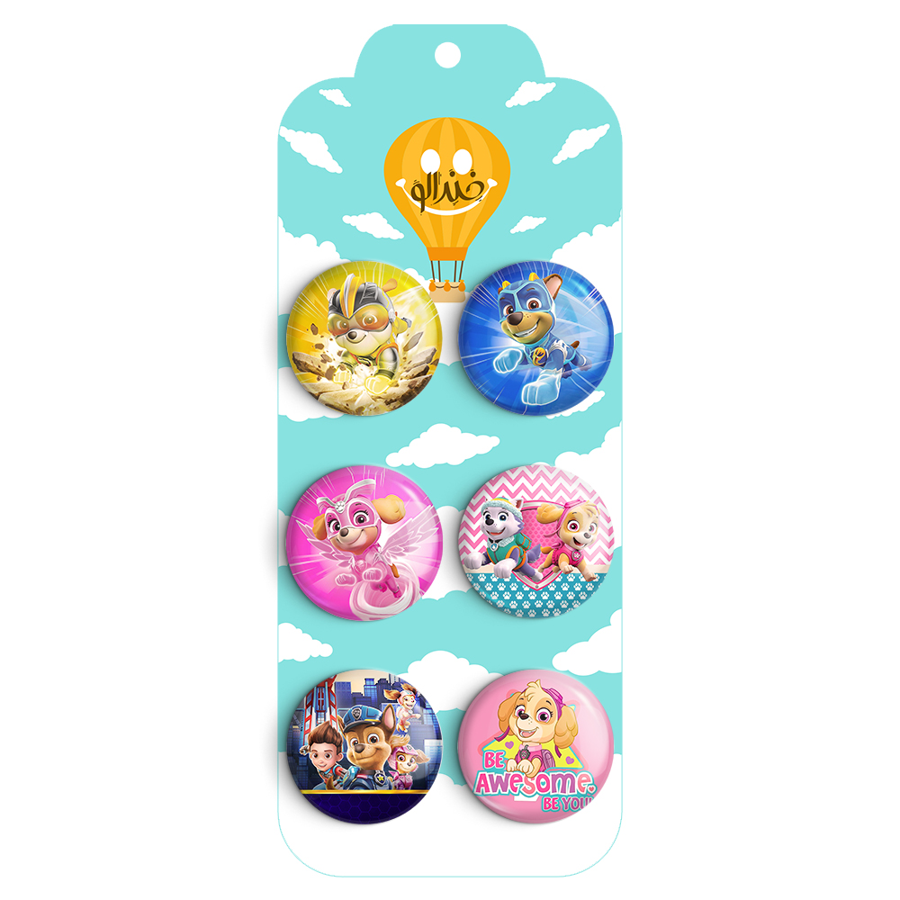 مجموعه 6 عددی پیکسل خندالو طرح سگ های نگهبان (PAW Patrol) با روکش سلفون حرارتی براق ضدخش و قطعه پشتی رنگی تولید شده است. قطعات پشتی از میان 6 رنگ سفید، مشکی، صورتی، زرد، آبی و قرمز که با توجه به نوع و رنگبندی طرح روی پیکسل انتخاب شده اند تولید می شود و در هر بسته بندی مطابق عکس محصول می باشد.