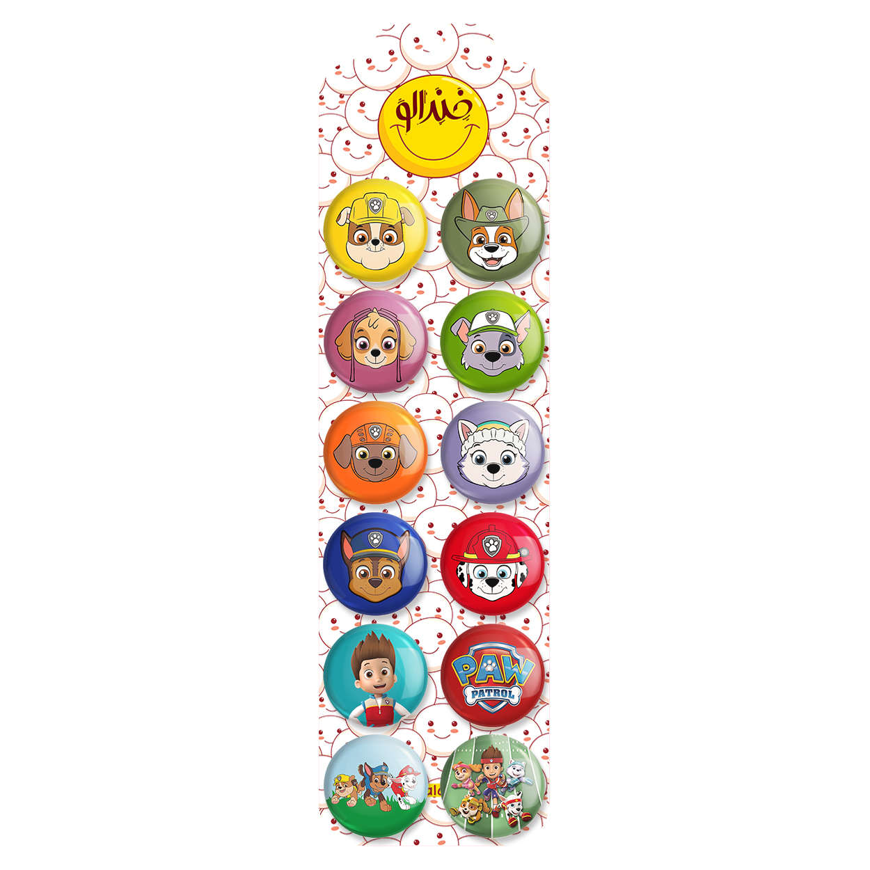 پک 12 عددی پیکسل خندالو طرح سگ های نگهبان (PAW Patrol) با روکش سلفون حرارتی براق ضدخش و قطعه پشتی رنگی تولید شده است. قطعات پشتی از میان 6 رنگ سفید، مشکی، صورتی، زرد، آبی و قرمز که با توجه به نوع و رنگبندی طرح روی پیکسل انتخاب شده اند تولید می شود و در هر بسته بندی مطابق عکس محصول می باشد. قطعات پلاستیکی پشت پیکسل با سوزن یک تکه ثابت و بدون لغزش و جا به جایی، ایستایی بسیار بهتری نسبت به پشتی فلزی پیکسل دارند که این مهم در تولید این محصول نیز رعایت شده است.