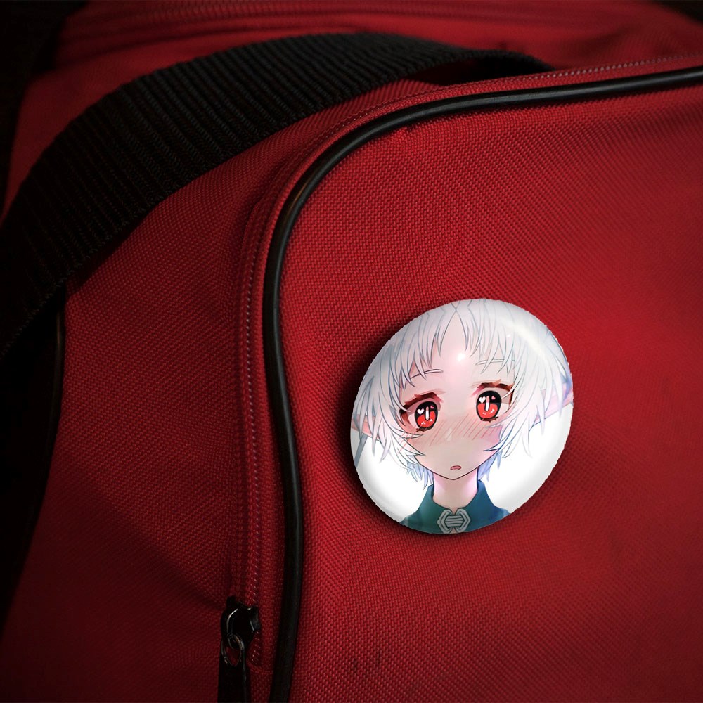 پیکسل 44 میلی متری سیلفیت انیمه موشوکو تنسی خندالو با روکش سلفون حرارتی مات مخملی ضدخش و قطعه پشتی رنگی تولید شده است.پلاستیکی پشت پیکسل با سوزن یک تکه ثابت و بدون لغزش و جا به جایی، ایستایی بسیار بهتری نسبت به پشتی فلزی پیکسل دارند که این مهم در تولید این محصول نیز رعایت شده است.