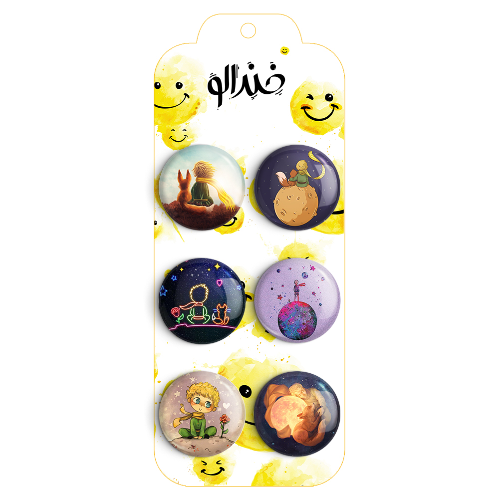 مجموعه 6 عددی پیکسل خندالو طرح شازده کوچولو (The Little Prince) با روکش سلفون حرارتی براق ضدخش و قطعه پشتی رنگی تولید شده است. قطعات پشتی از میان 6 رنگ سفید، مشکی، صورتی، زرد، آبی و قرمز که با توجه به نوع و رنگبندی طرح روی پیکسل انتخاب شده اند تولید می شود و در هر بسته بندی مطابق عکس محصول می باشد.