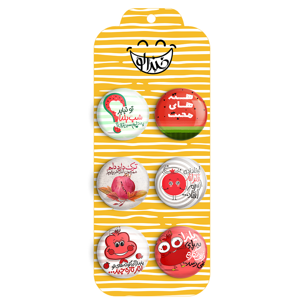 مجموعه 6 عددی پیکسل خندالو طرح شب یلدا با روکش سلفون حرارتی براق ضدخش و قطعه پشتی رنگی تولید شده است. قطعات پشتی از میان 6 رنگ سفید، مشکی، صورتی، زرد، آبی و قرمز که با توجه به نوع و رنگبندی طرح روی پیکسل انتخاب شده اند تولید می شود و در هر بسته بندی مطابق عکس محصول می باشد. قطعات پلاستیکی پشت پیکسل با سوزن یک تکه ثابت و بدون لغزش و جا به جایی، ایستایی بسیار بهتری نسبت به پشتی فلزی پیکسل دارند که این مهم در تولید این محصول نیز رعایت شده است. چاپ پیکسل نیز با دستگاه های استاندارد و با بهترین سطح کیفی صورت گرفته و طرح با شفافیتی مثال زدنی و با سلفونی بدون شکست نور بر روی پیکسل نقش بسته است. همچنین بسته بندی جذاب و مینیمال پیکسل ها، آنها را مناسب هدیه کرده است..