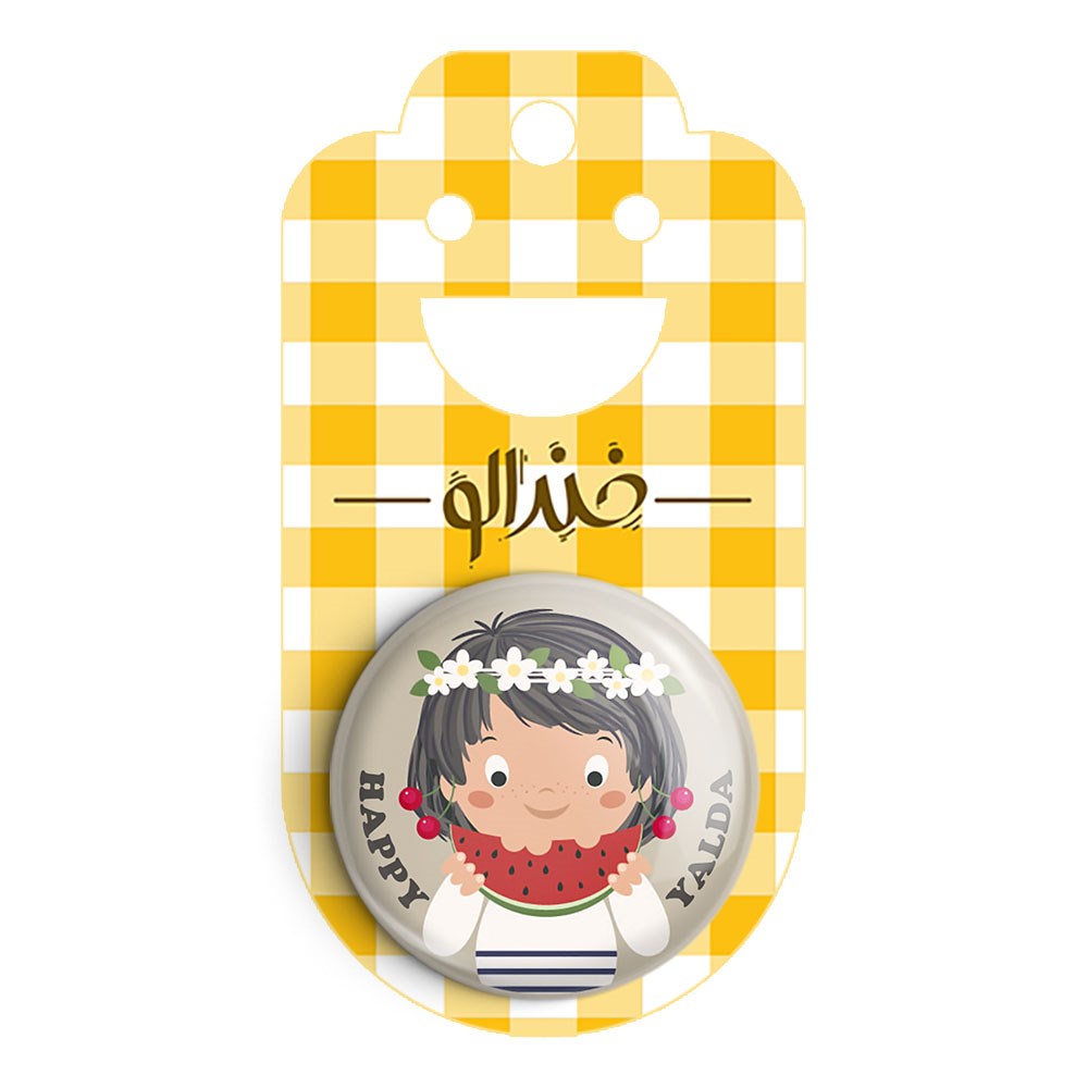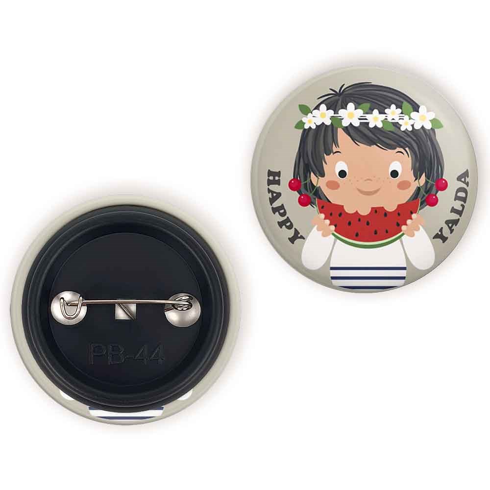 پیکسل 44 میلی متری شب یلدا خندالو با روکش سلفون حرارتی مات مخملی ضدخش و قطعه پشتی رنگی تولید شده است.پلاستیکی پشت پیکسل با سوزن یک تکه ثابت و بدون لغزش و جا به جایی، ایستایی بسیار بهتری نسبت به پشتی فلزی پیکسل دارند که این مهم در تولید این محصول نیز رعایت شده است.