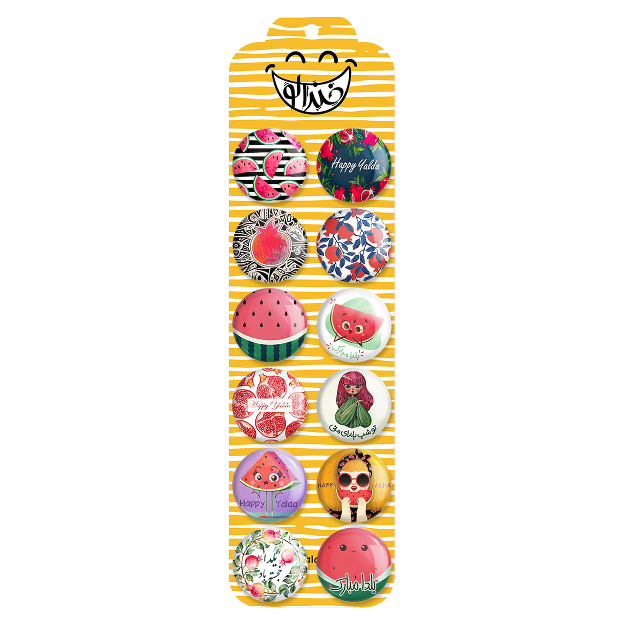 پک 12 عددی پیکسل خندالو طرح شب یلدا با روکش سلفون حرارتی براق ضدخش و قطعه پشتی رنگی تولید شده است. قطعات پشتی از میان 6 رنگ سفید، مشکی، صورتی، زرد، آبی و قرمز که با توجه به نوع و رنگبندی طرح روی پیکسل انتخاب شده اند تولید می شود و در هر بسته بندی مطابق عکس محصول می باشد. قطعات پلاستیکی پشت پیکسل با سوزن یک تکه ثابت و بدون لغزش و جا به جایی، ایستایی بسیار بهتری نسبت به پشتی فلزی پیکسل دارند که این مهم در تولید این محصول نیز رعایت شده است. چاپ پیکسل طرح شب یلدا بسته ۱۲ عددی نیز با دستگاه های استاندارد و با بهترین سطح کیفی صورت گرفته و طرح با شفافیتی مثال زدنی و با سلفونی بدون شکست نور بر روی پیکسل نقش بسته است.