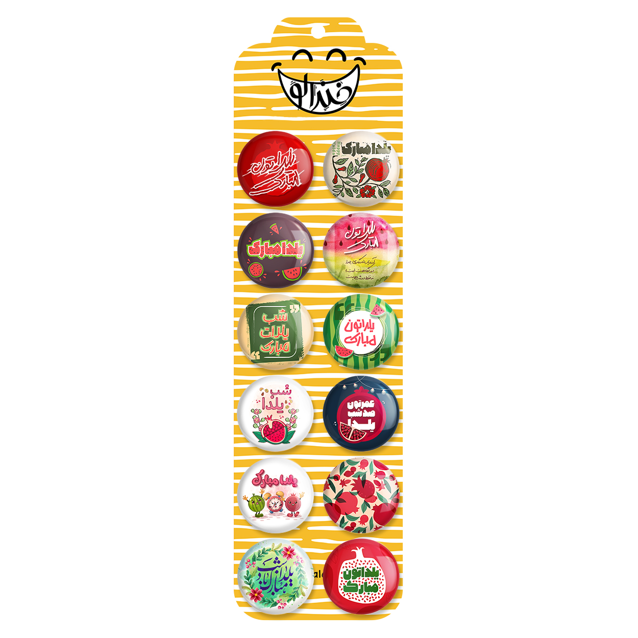 پک 12 عددی پیکسل خندالو طرح شب یلدا با روکش سلفون حرارتی براق ضدخش و قطعه پشتی رنگی تولید شده است. قطعات پشتی از میان 6 رنگ سفید، مشکی، صورتی، زرد، آبی و قرمز که با توجه به نوع و رنگبندی طرح روی پیکسل انتخاب شده اند تولید می شود و در هر بسته بندی مطابق عکس محصول می باشد. قطعات پلاستیکی پشت پیکسل با سوزن یک تکه ثابت و بدون لغزش و جا به جایی، ایستایی بسیار بهتری نسبت به پشتی فلزی پیکسل دارند که این مهم در تولید این محصول نیز رعایت شده است. چاپ پیکسل طرح شب یلدا بسته ۱۲ عددی نیز با دستگاه های استاندارد و با بهترین سطح کیفی صورت گرفته و طرح با شفافیتی مثال زدنی و با سلفونی بدون شکست نور بر روی پیکسل نقش بسته است.