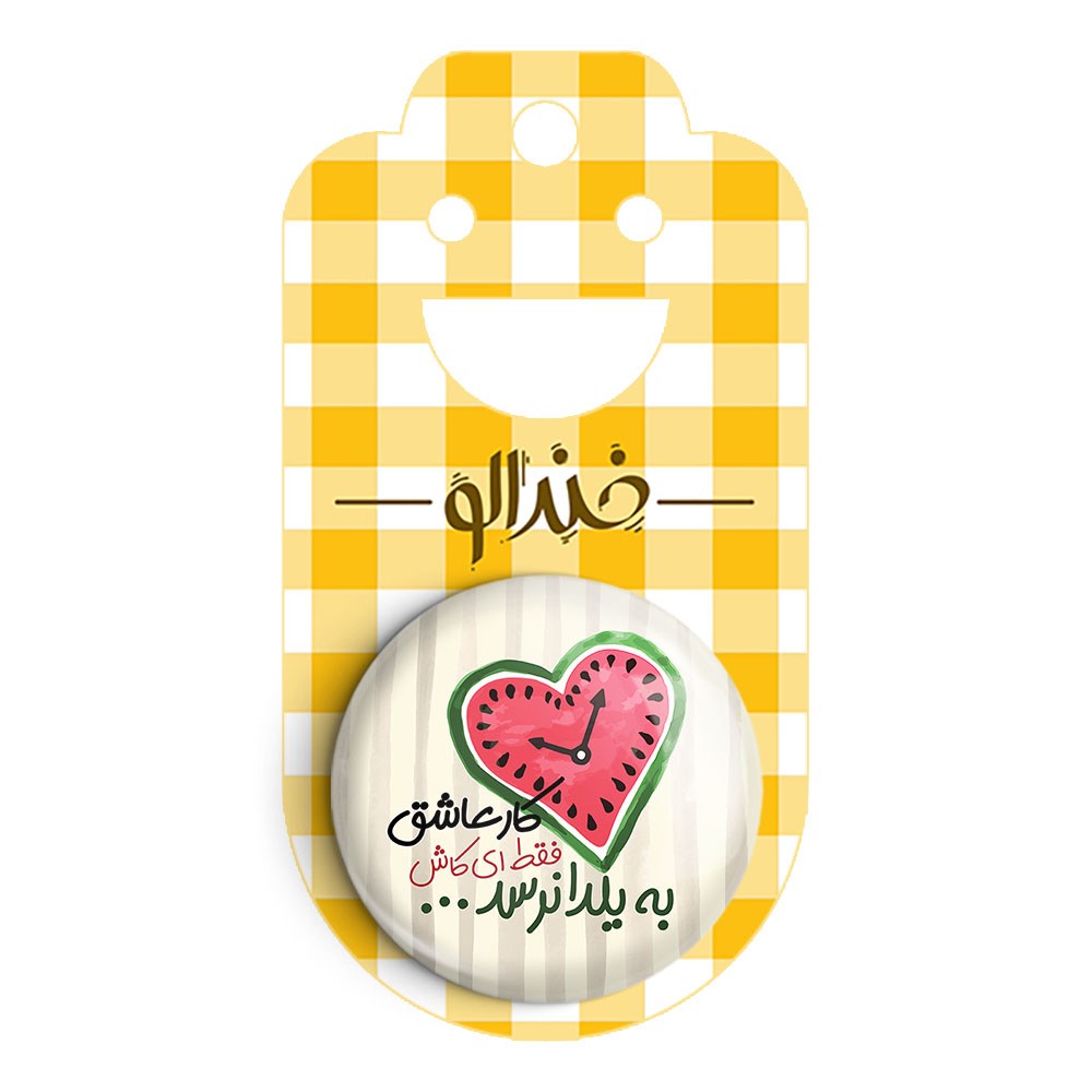 پیکسل 44 میلی متری شب یلدا خندالو با روکش سلفون حرارتی مات مخملی ضدخش و قطعه پشتی رنگی تولید شده است.پلاستیکی پشت پیکسل با سوزن یک تکه ثابت و بدون لغزش و جا به جایی، ایستایی بسیار بهتری نسبت به پشتی فلزی پیکسل دارند که این مهم در تولید این محصول نیز رعایت شده است.
