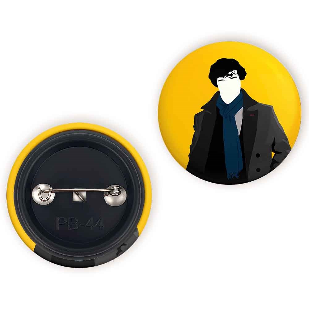 پیکسل 44 میلی متری شرلوک هولمز Sherlock Holmes خندالو با روکش سلفون حرارتی مات مخملی ضدخش و قطعه پشتی رنگی تولید شده است.پلاستیکی پشت پیکسل با سوزن یک تکه ثابت و بدون لغزش و جا به جایی، ایستایی بسیار بهتری نسبت به پشتی فلزی پیکسل دارند که این مهم در تولید این محصول نیز رعایت شده است.