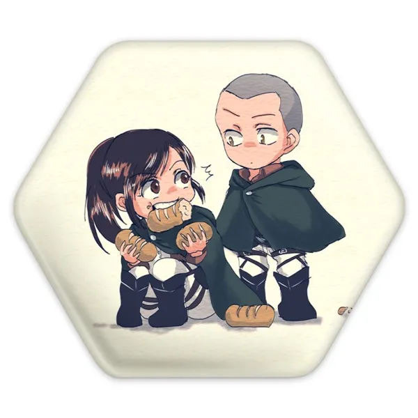 پیکسل شش ضلعی ساشا و کانی انیمه اتک آن تایتان Attack on Titan خندالو، محصولی جدید و منحصر به فرد است که با کیفیتی مثال زدنی برای اولین بار در ایران توسط خندالو عرضه میشود چاپ پیکسل شش ضلعی ساشا و کانی انیمه اتک آن تایتان Attack on Titan خندالو با دستگاه های چاپ دیجیتال شش رنگ انجام می پذیرد که بالاترین کیفیت چاپ را داراست. ضمن اینکه این محصول با تنوع طرحی بسیار بالایی که پیکسل خندالو دارد برای همه سلیقه ها ارائه می شود. ابعاد پیکسل شش ضلعی 58 در 58 میلی متر می باشد که جزو دسته بندی پیکسل های سایز بزرگ قرار میگیرد. روکش پیکسل های شش ضلعی خندالو طلقی بوده و کاملا شفاف و با کیفیت هستند.