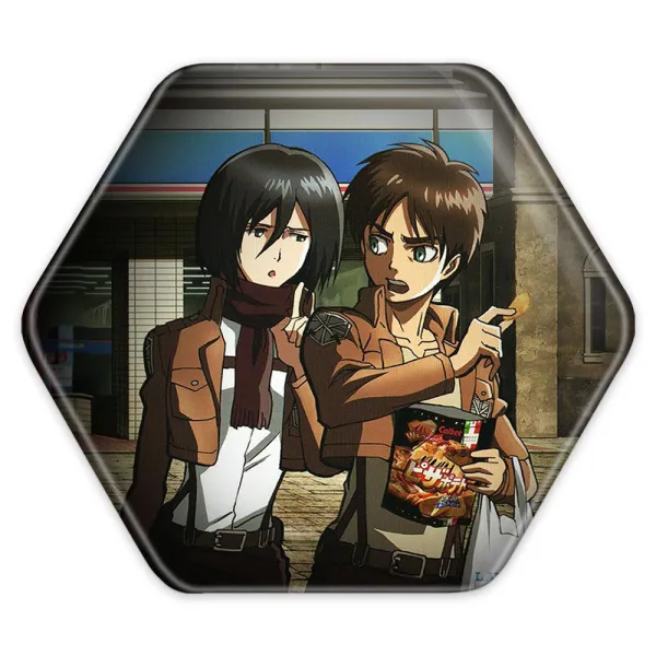 پیکسل شش ضلعی میکاسا و ارن انیمه اتک آن تایتان Attack on Titan خندالو، محصولی جدید و منحصر به فرد است که با کیفیتی مثال زدنی برای اولین بار در ایران توسط خندالو عرضه میشود چاپ پیکسل شش ضلعی میکاسا و ارن انیمه اتک آن تایتان Attack on Titan خندالو با دستگاه های چاپ دیجیتال شش رنگ انجام می پذیرد که بالاترین کیفیت چاپ را داراست.