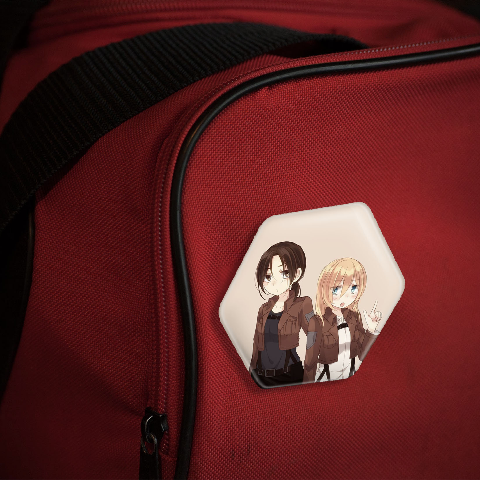 قطعه پشتی پیکسل شش ضلعی، فلزی بوده و سوزن یک تکه و تیز آن کاملا محکم و ثابت، بدون لغزش و جا به جایی در پشت محصول تعبیه شده است و ایستایی کاملا مناسبی دارد. علاوه بر اینکه پیکسل شش ضلعی محصولی جدید و جذاب است و گزینه مناسبی برای یک هدیه مقرون به صرفه به حساب می آید، بسته بندی جذاب و مینیمال پیکسل شش ضلعی یمیر و هیستوریا انیمه اتک آن تایتان Attack on Titan نیز، زیبایی آنها را دو چندان کرده است.