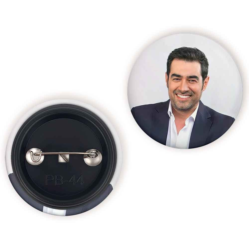 پیکسل 44 میلی متری شهاب حسینی خندالو با روکش سلفون حرارتی مات مخملی ضدخش و قطعه پشتی رنگی تولید شده است.پلاستیکی پشت پیکسل با سوزن یک تکه ثابت و بدون لغزش و جا به جایی، ایستایی بسیار بهتری نسبت به پشتی فلزی پیکسل دارند که این مهم در تولید این محصول نیز رعایت شده است.