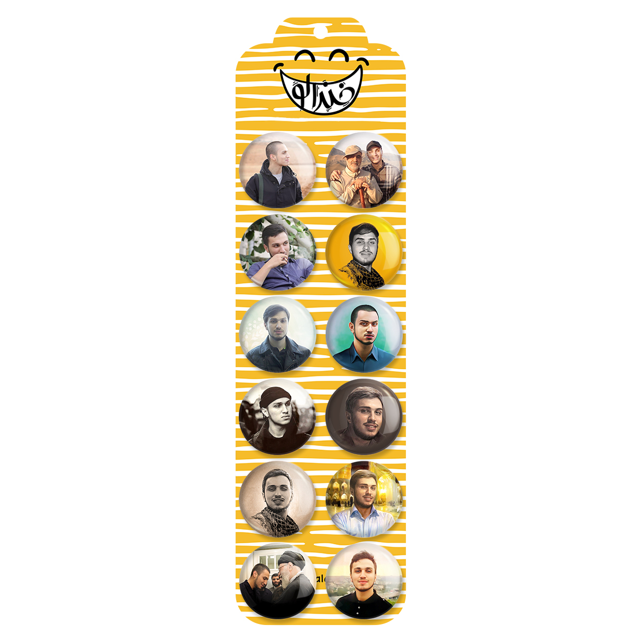 پک 12 عددی پیکسل خندالو طرح شهید جهاد مغنیه با روکش سلفون حرارتی براق ضدخش و قطعه پشتی رنگی تولید شده است. قطعات پشتی از میان 6 رنگ سفید، مشکی، صورتی، زرد، آبی و قرمز که با توجه به نوع و رنگبندی طرح روی پیکسل انتخاب شده اند تولید می شود و در هر بسته بندی مطابق عکس محصول می باشد. قطعات پلاستیکی پشت پیکسل با سوزن یک تکه ثابت و بدون لغزش و جا به جایی، ایستایی بسیار بهتری نسبت به پشتی فلزی پیکسل دارند که این مهم در تولید این محصول نیز رعایت شده است. چاپ پیکسل طرح شهید جهاد مغنیه بسته ۱۲ عددی نیز با دستگاه های استاندارد و با بهترین سطح کیفی صورت گرفته و طرح با شفافیتی مثال زدنی و با سلفونی بدون شکست نور بر روی پیکسل نقش بسته است.