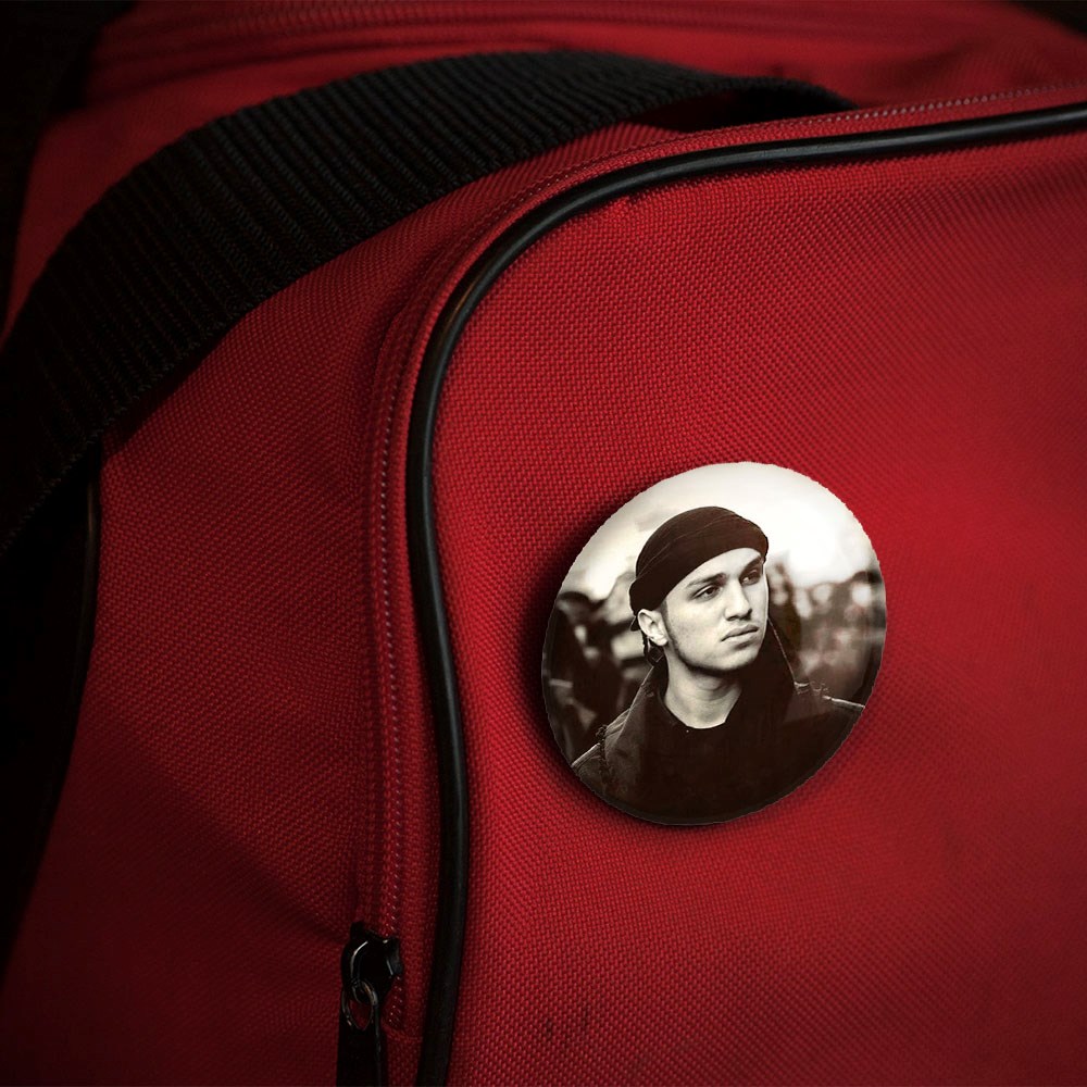 پیکسل 44 میلی متری شهید جهاد مغنیه خندالو با روکش سلفون حرارتی مات مخملی ضدخش و قطعه پشتی رنگی تولید شده است.پلاستیکی پشت پیکسل با سوزن یک تکه ثابت و بدون لغزش و جا به جایی، ایستایی بسیار بهتری نسبت به پشتی فلزی پیکسل دارند که این مهم در تولید این محصول نیز رعایت شده است.