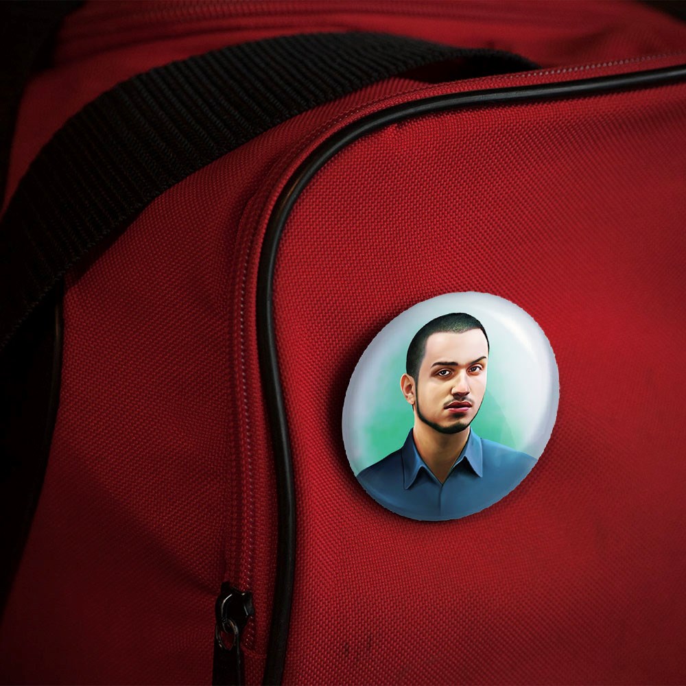 پیکسل 44 میلی متری شهید جهاد مغنیه خندالو با روکش سلفون حرارتی مات مخملی ضدخش و قطعه پشتی رنگی تولید شده است.پلاستیکی پشت پیکسل با سوزن یک تکه ثابت و بدون لغزش و جا به جایی، ایستایی بسیار بهتری نسبت به پشتی فلزی پیکسل دارند که این مهم در تولید این محصول نیز رعایت شده است.