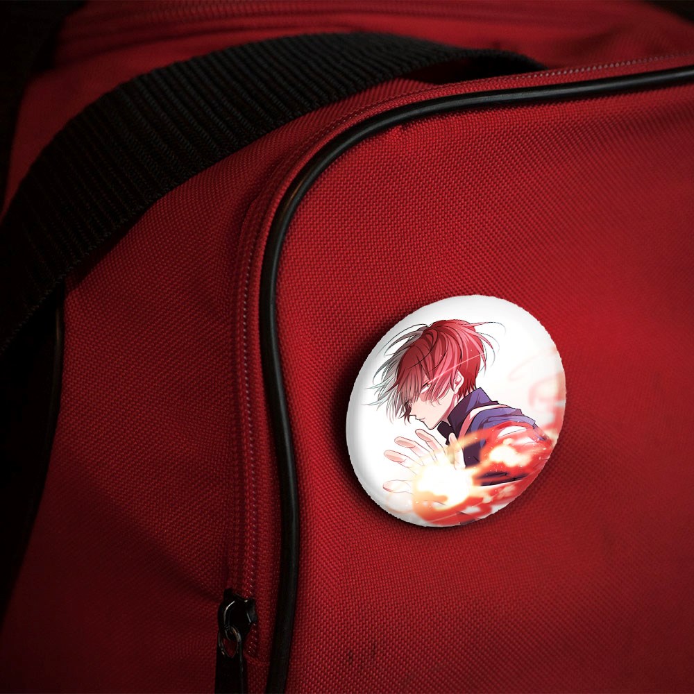 پیکسل 44 میلی متری شوتو تودروکی انیمه آکادمی قهرمان من خندالو با روکش سلفون حرارتی مات مخملی ضدخش و قطعه پشتی رنگی تولید شده است.پلاستیکی پشت پیکسل با سوزن یک تکه ثابت و بدون لغزش و جا به جایی، ایستایی بسیار بهتری نسبت به پشتی فلزی پیکسل دارند که این مهم در تولید این محصول نیز رعایت شده است.
