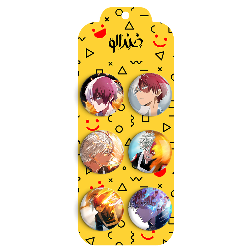 مجموعه 6 عددی پیکسل خندالو طرح شوتو تودوروکی آکادمی قهرمان من با روکش سلفون حرارتی براق ضدخش و قطعه پشتی رنگی تولید شده است. قطعات پشتی از میان 6 رنگ سفید، مشکی، صورتی، زرد، آبی و قرمز که با توجه به نوع و رنگبندی طرح روی پیکسل انتخاب شده اند تولید می شود و در هر بسته بندی مطابق عکس محصول می باشد.