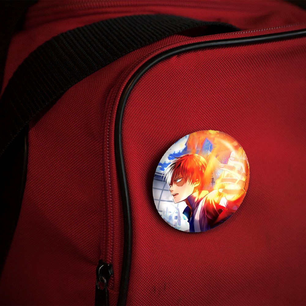 پیکسل 44 میلی متری شوتو تودوروکی انیمه آکادمی قهرمان من خندالو با روکش سلفون حرارتی مات مخملی ضدخش و قطعه پشتی رنگی تولید شده است.پلاستیکی پشت پیکسل با سوزن یک تکه ثابت و بدون لغزش و جا به جایی، ایستایی بسیار بهتری نسبت به پشتی فلزی پیکسل دارند که این مهم در تولید این محصول نیز رعایت شده است.