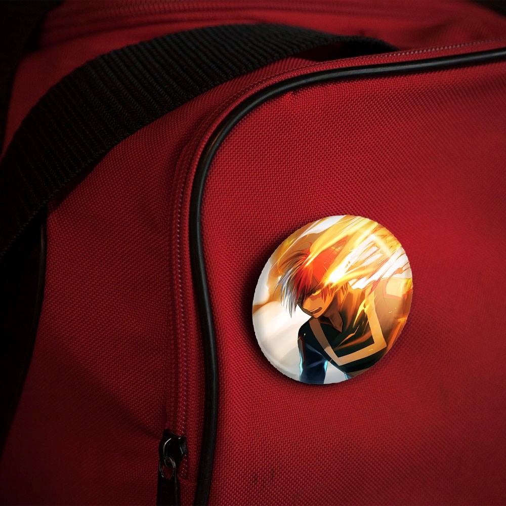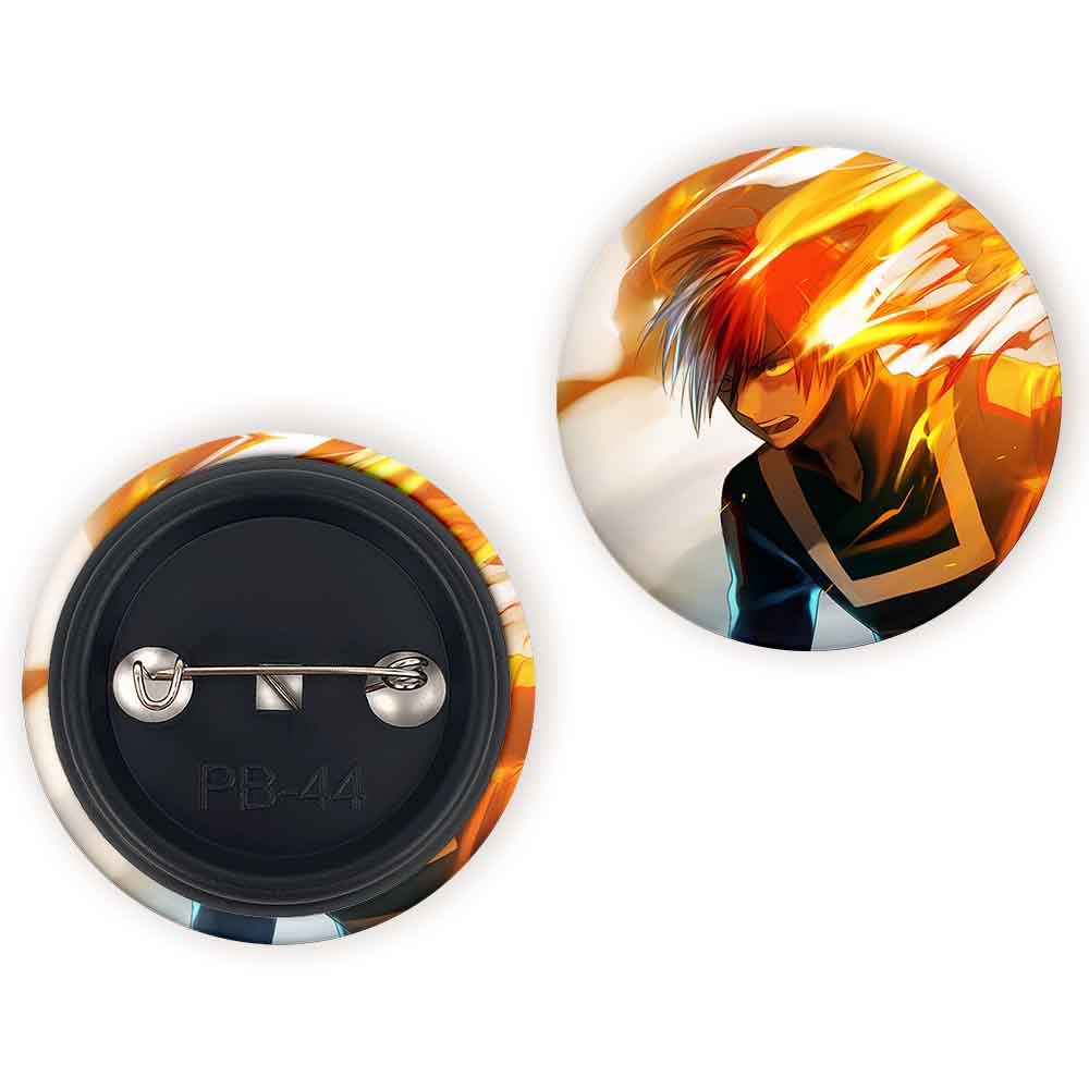 پیکسل 44 میلی متری شوتو تودوروکی انیمه قهرمان من خندالو با روکش سلفون حرارتی مات مخملی ضدخش و قطعه پشتی رنگی تولید شده است.پلاستیکی پشت پیکسل با سوزن یک تکه ثابت و بدون لغزش و جا به جایی، ایستایی بسیار بهتری نسبت به پشتی فلزی پیکسل دارند که این مهم در تولید این محصول نیز رعایت شده است.