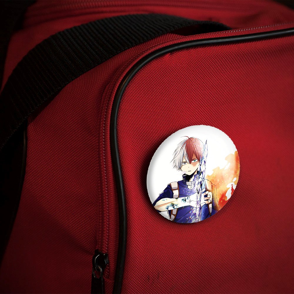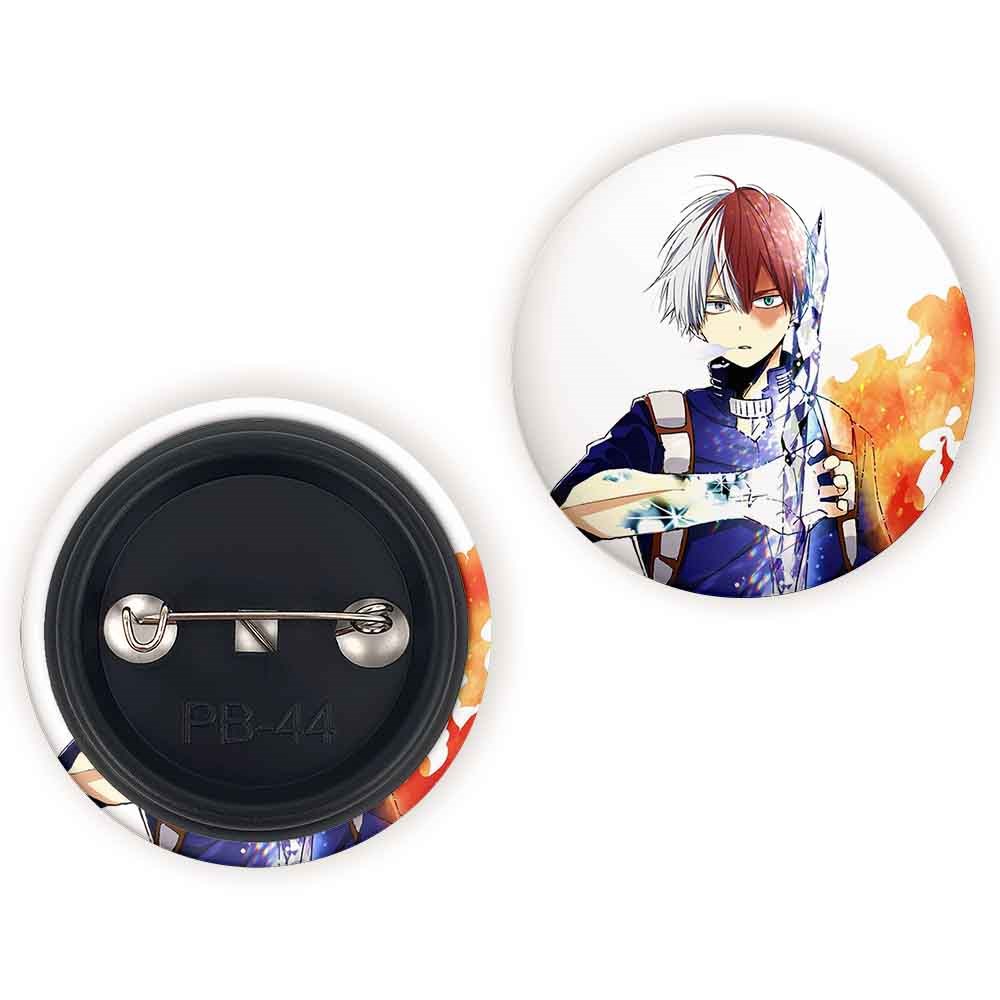 پیکسل 44 میلی متری شوتو تودوروکی انیمه قهرمان من خندالو با روکش سلفون حرارتی مات مخملی ضدخش و قطعه پشتی رنگی تولید شده است.پلاستیکی پشت پیکسل با سوزن یک تکه ثابت و بدون لغزش و جا به جایی، ایستایی بسیار بهتری نسبت به پشتی فلزی پیکسل دارند که این مهم در تولید این محصول نیز رعایت شده است.