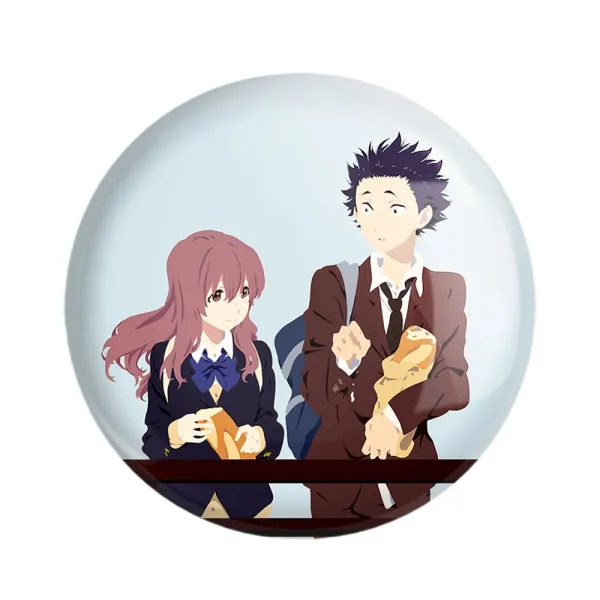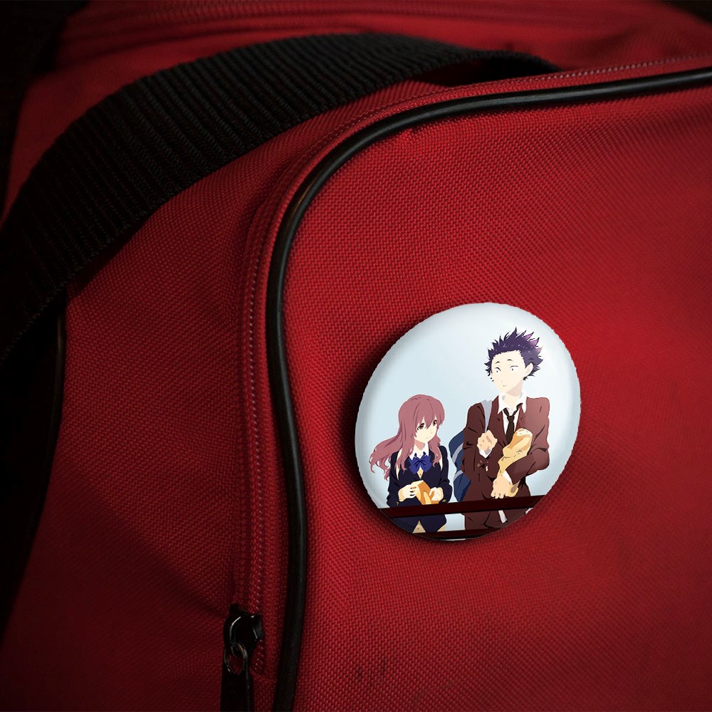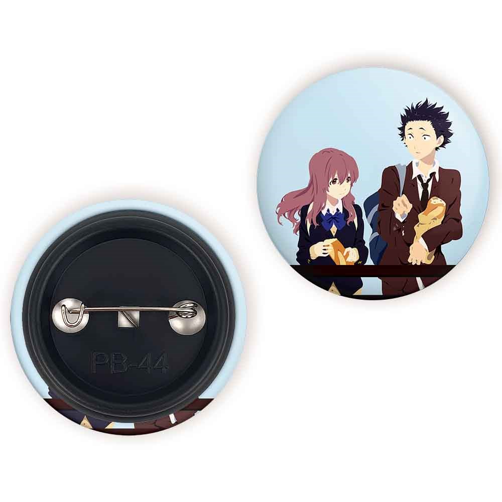 پیکسل 44 میلی متری شوکو نیشیمیا و شویا ایشیدا انیمه سایلنت ویس A Silent Voice خندالو با روکش سلفون حرارتی مات مخملی ضدخش و قطعه پشتی رنگی تولید شده است.پلاستیکی پشت پیکسل با سوزن یک تکه ثابت و بدون لغزش و جا به جایی، ایستایی بسیار بهتری نسبت به پشتی فلزی پیکسل دارند که این مهم در تولید این محصول نیز رعایت شده است.