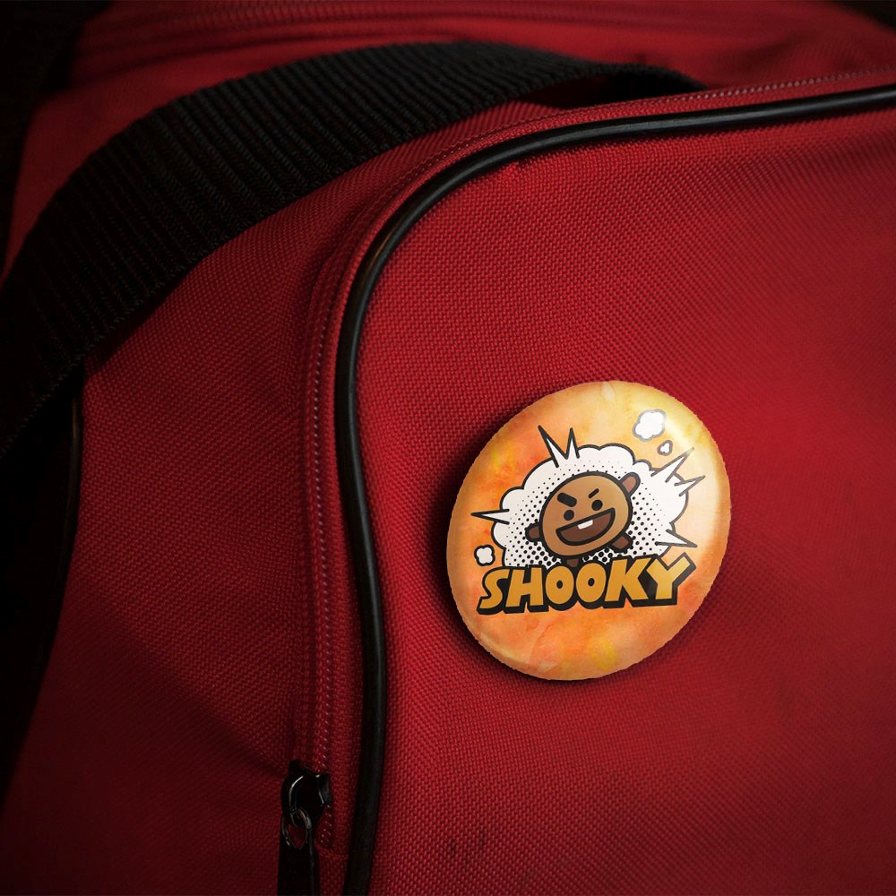 پیکسل 44 میلی متری شوکی BT21 Shooky خندالو با روکش سلفون حرارتی مات مخملی ضدخش و قطعه پشتی رنگی تولید شده است.پلاستیکی پشت پیکسل با سوزن یک تکه ثابت و بدون لغزش و جا به جایی، ایستایی بسیار بهتری نسبت به پشتی فلزی پیکسل دارند که این مهم در تولید این محصول نیز رعایت شده است.