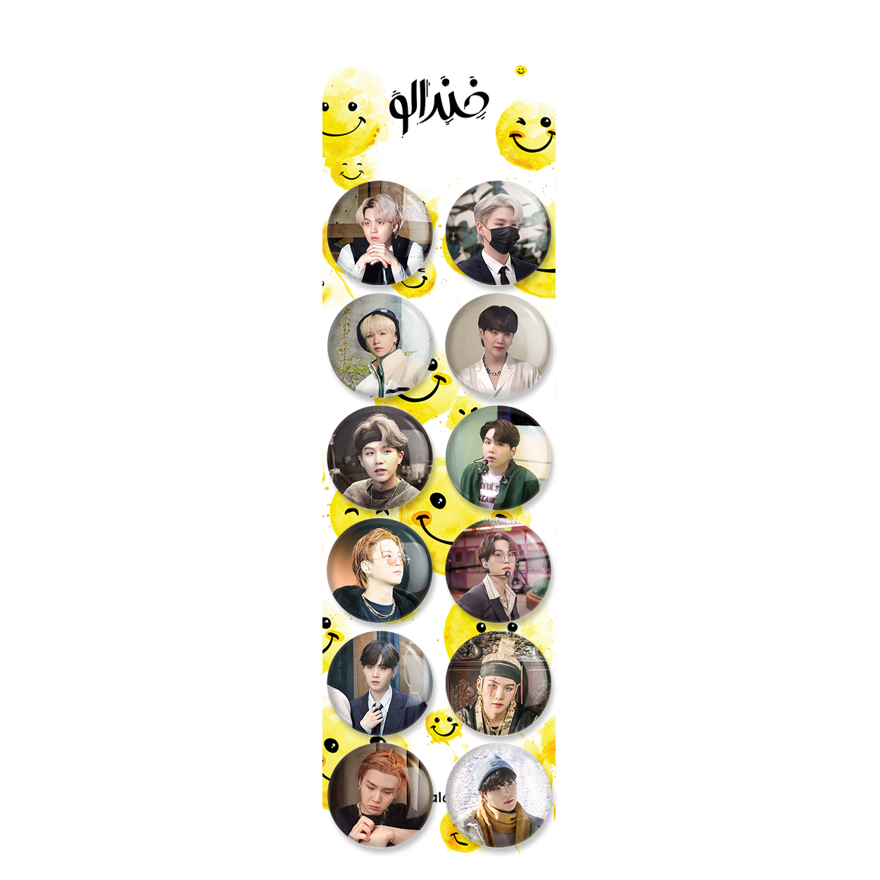 پک 12 عددی پیکسل خندالو طرح شوگا (Suga) بی تی اس BTS با روکش سلفون حرارتی براق ضدخش و قطعه پشتی رنگی تولید شده است. قطعات پشتی از میان 6 رنگ سفید، مشکی، صورتی، زرد، آبی و قرمز که با توجه به نوع و رنگبندی طرح روی پیکسل انتخاب شده اند تولید می شود و در هر بسته بندی مطابق عکس محصول می باشد. قطعات پلاستیکی پشت پیکسل با سوزن یک تکه ثابت و بدون لغزش و جا به جایی، ایستایی بسیار بهتری نسبت به پشتی فلزی پیکسل دارند که این مهم در تولید این محصول نیز رعایت شده است.