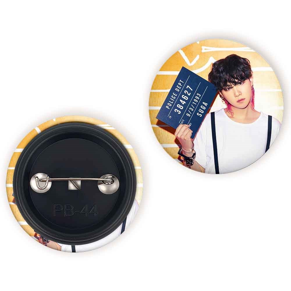 پیکسل 44 میلی متری شوگا Suga گروه بی تی اس BTS خندالو با روکش سلفون حرارتی مات مخملی ضدخش و قطعه پشتی رنگی تولید شده است.پلاستیکی پشت پیکسل با سوزن یک تکه ثابت و بدون لغزش و جا به جایی، ایستایی بسیار بهتری نسبت به پشتی فلزی پیکسل دارند که این مهم در تولید این محصول نیز رعایت شده است.