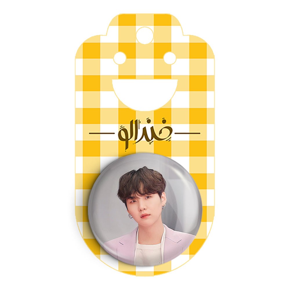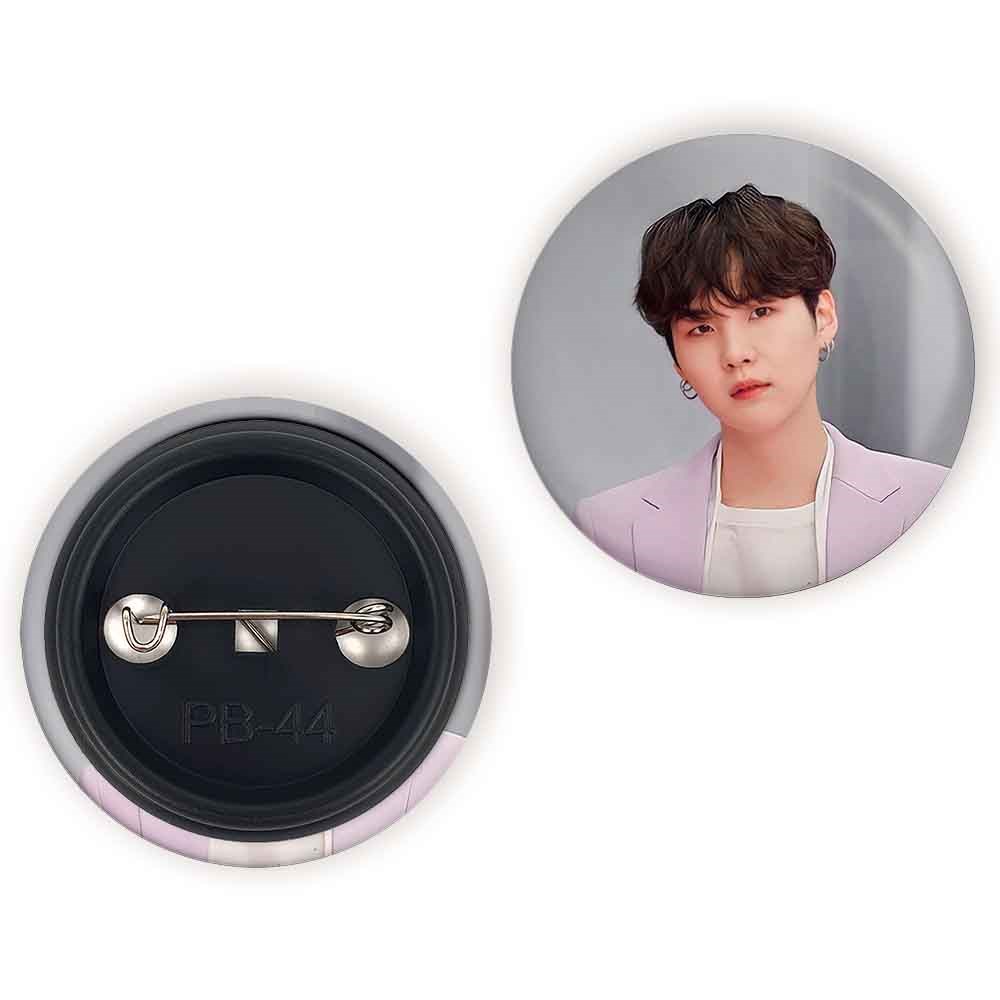 پیکسل 44 میلی متری شوگا Suga گروه بی تی اس BTS خندالو با روکش سلفون حرارتی مات مخملی ضدخش و قطعه پشتی رنگی تولید شده است.پلاستیکی پشت پیکسل با سوزن یک تکه ثابت و بدون لغزش و جا به جایی، ایستایی بسیار بهتری نسبت به پشتی فلزی پیکسل دارند که این مهم در تولید این محصول نیز رعایت شده است.