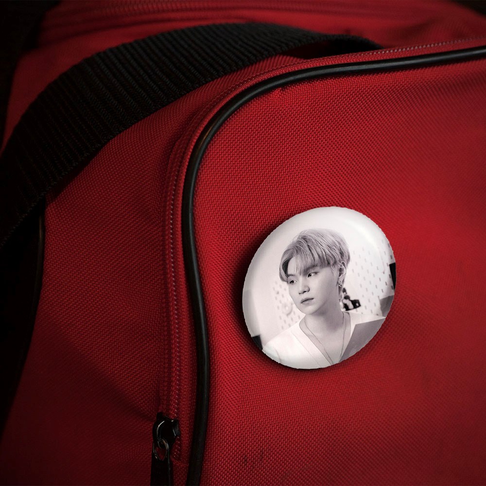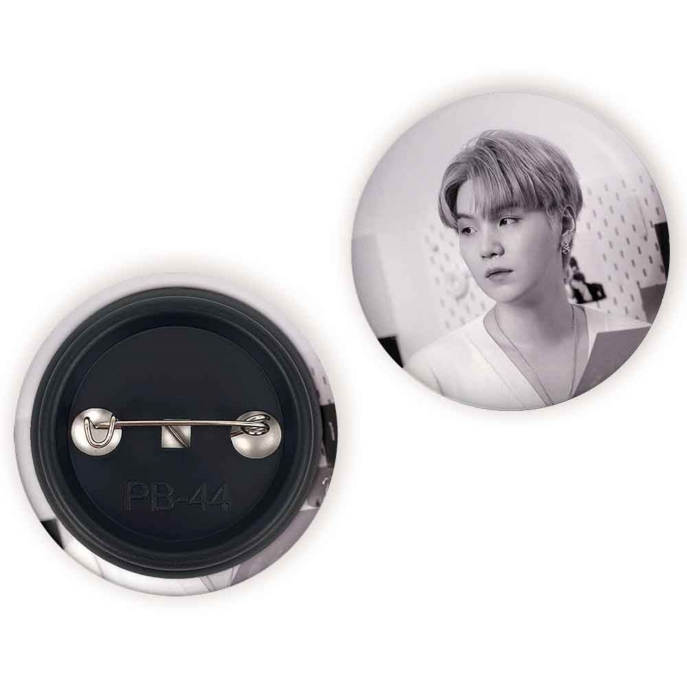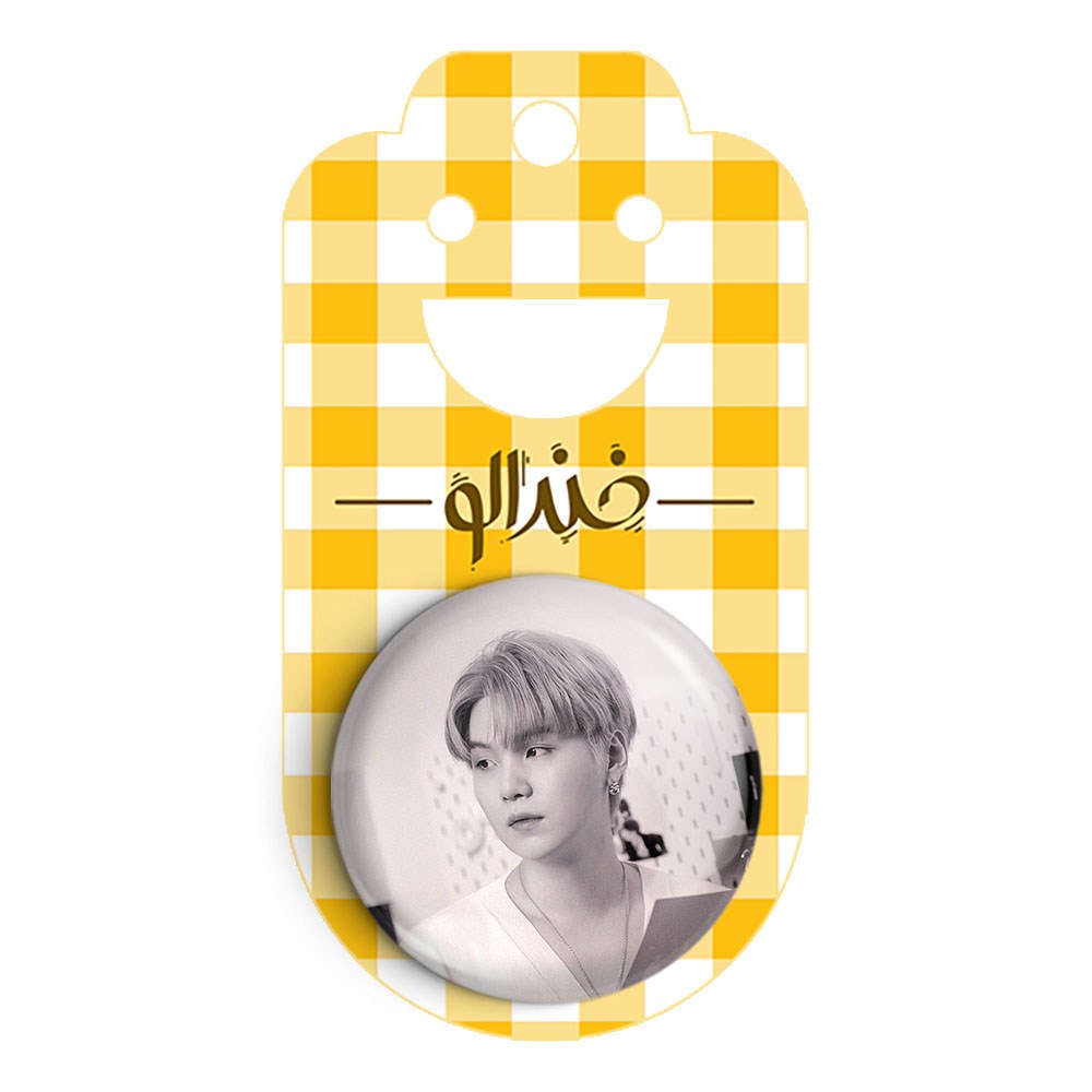 پیکسل 44 میلی متری شوگا Suga گروه بی تی اس BTS خندالو با روکش سلفون حرارتی مات مخملی ضدخش و قطعه پشتی رنگی تولید شده است.پلاستیکی پشت پیکسل با سوزن یک تکه ثابت و بدون لغزش و جا به جایی، ایستایی بسیار بهتری نسبت به پشتی فلزی پیکسل دارند که این مهم در تولید این محصول نیز رعایت شده است.
