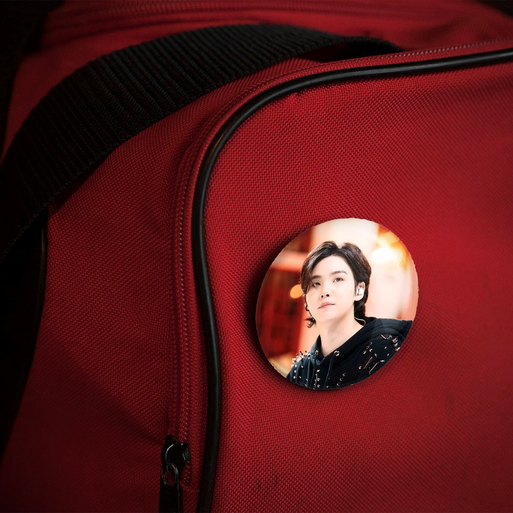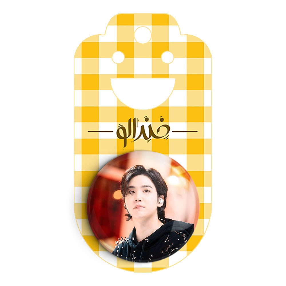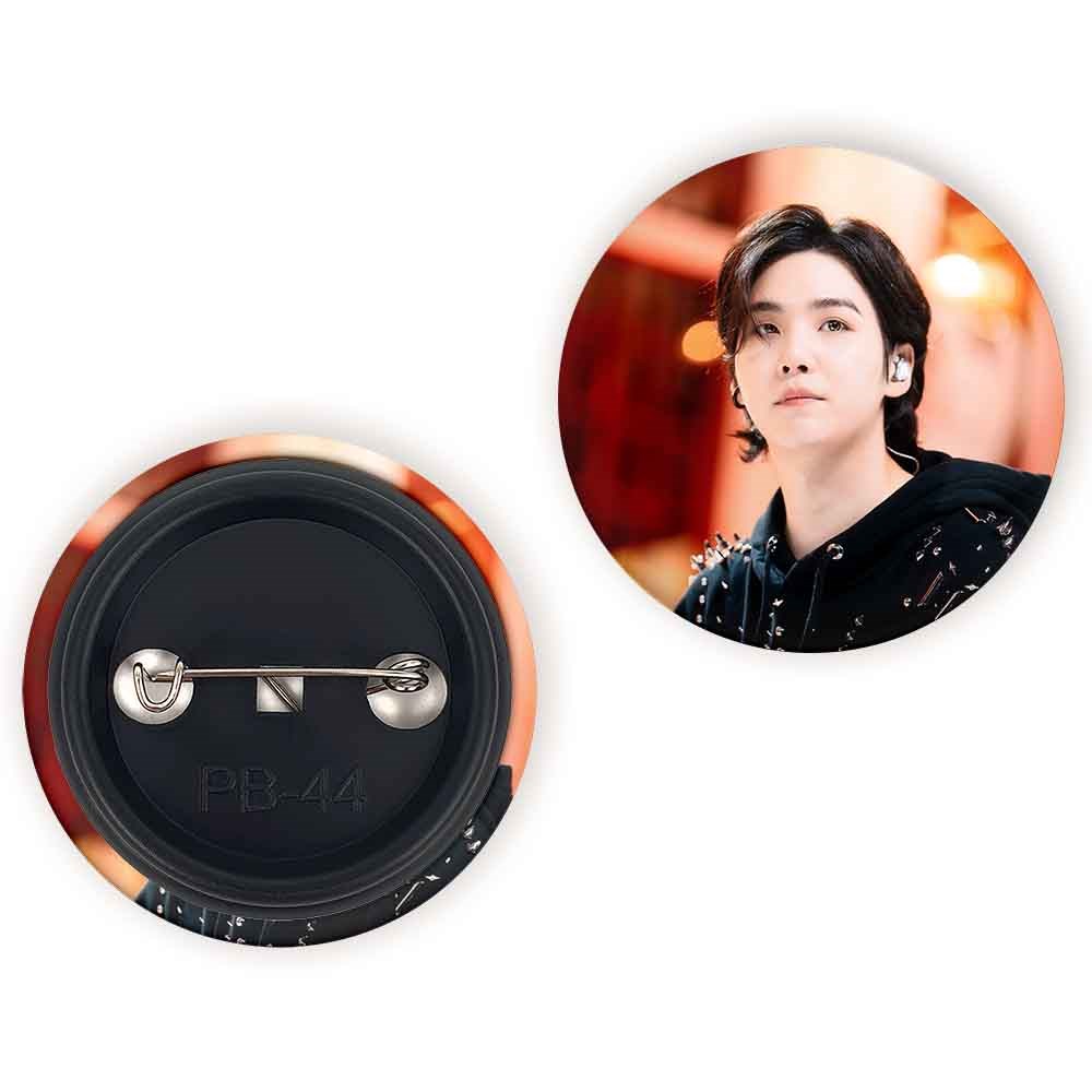 پیکسل 44 میلی متری شوگا Suga گروه بی تی اس BTS خندالو با روکش سلفون حرارتی مات مخملی ضدخش و قطعه پشتی رنگی تولید شده است.پلاستیکی پشت پیکسل با سوزن یک تکه ثابت و بدون لغزش و جا به جایی، ایستایی بسیار بهتری نسبت به پشتی فلزی پیکسل دارند که این مهم در تولید این محصول نیز رعایت شده است.