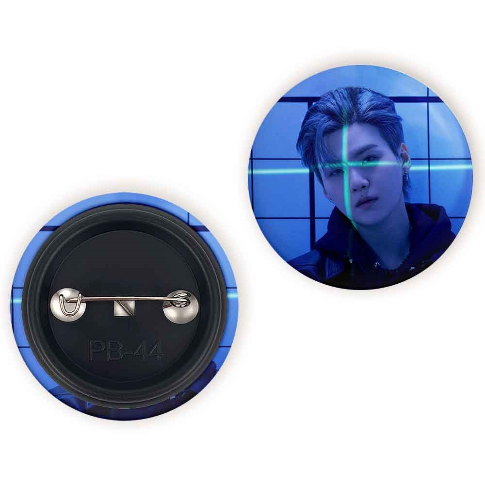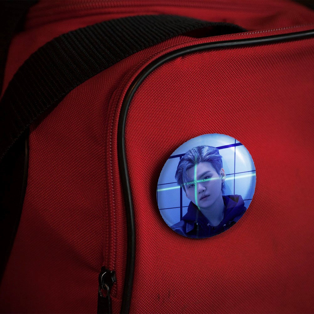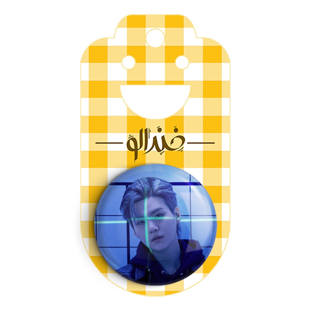 پیکسل 44 میلی متری شوگا Suga گروه بی تی اس BTS خندالو با روکش سلفون حرارتی مات مخملی ضدخش و قطعه پشتی رنگی تولید شده است.پلاستیکی پشت پیکسل با سوزن یک تکه ثابت و بدون لغزش و جا به جایی، ایستایی بسیار بهتری نسبت به پشتی فلزی پیکسل دارند که این مهم در تولید این محصول نیز رعایت شده است.