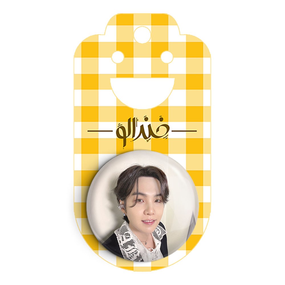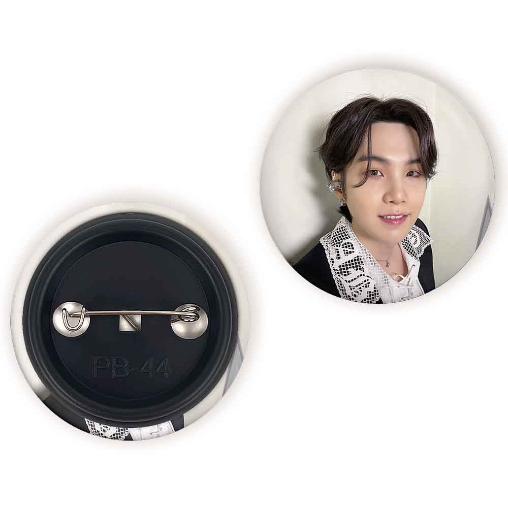پیکسل 44 میلی متری شوگا Suga گروه بی تی اس BTS خندالو با روکش سلفون حرارتی مات مخملی ضدخش و قطعه پشتی رنگی تولید شده است.پلاستیکی پشت پیکسل با سوزن یک تکه ثابت و بدون لغزش و جا به جایی، ایستایی بسیار بهتری نسبت به پشتی فلزی پیکسل دارند که این مهم در تولید این محصول نیز رعایت شده است.