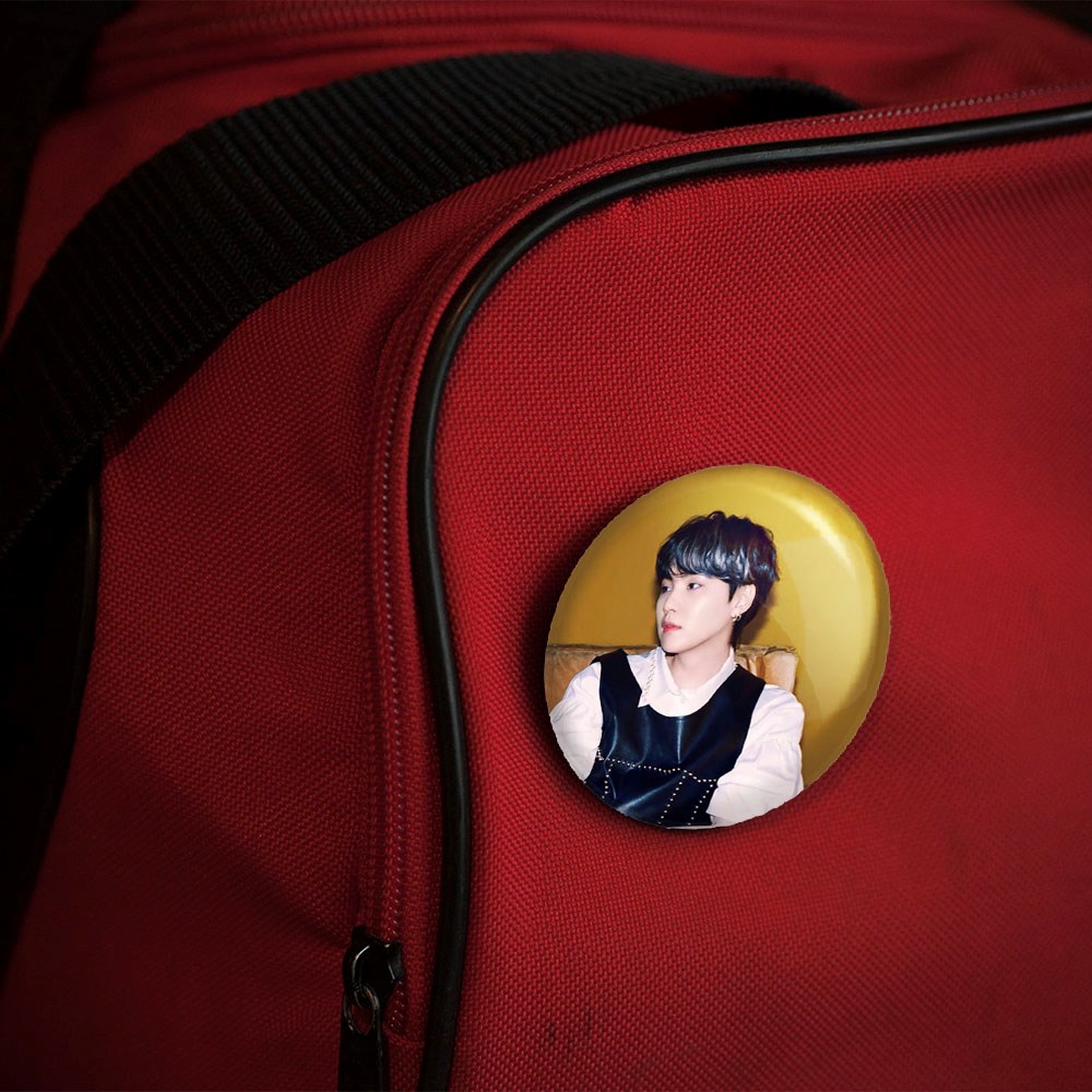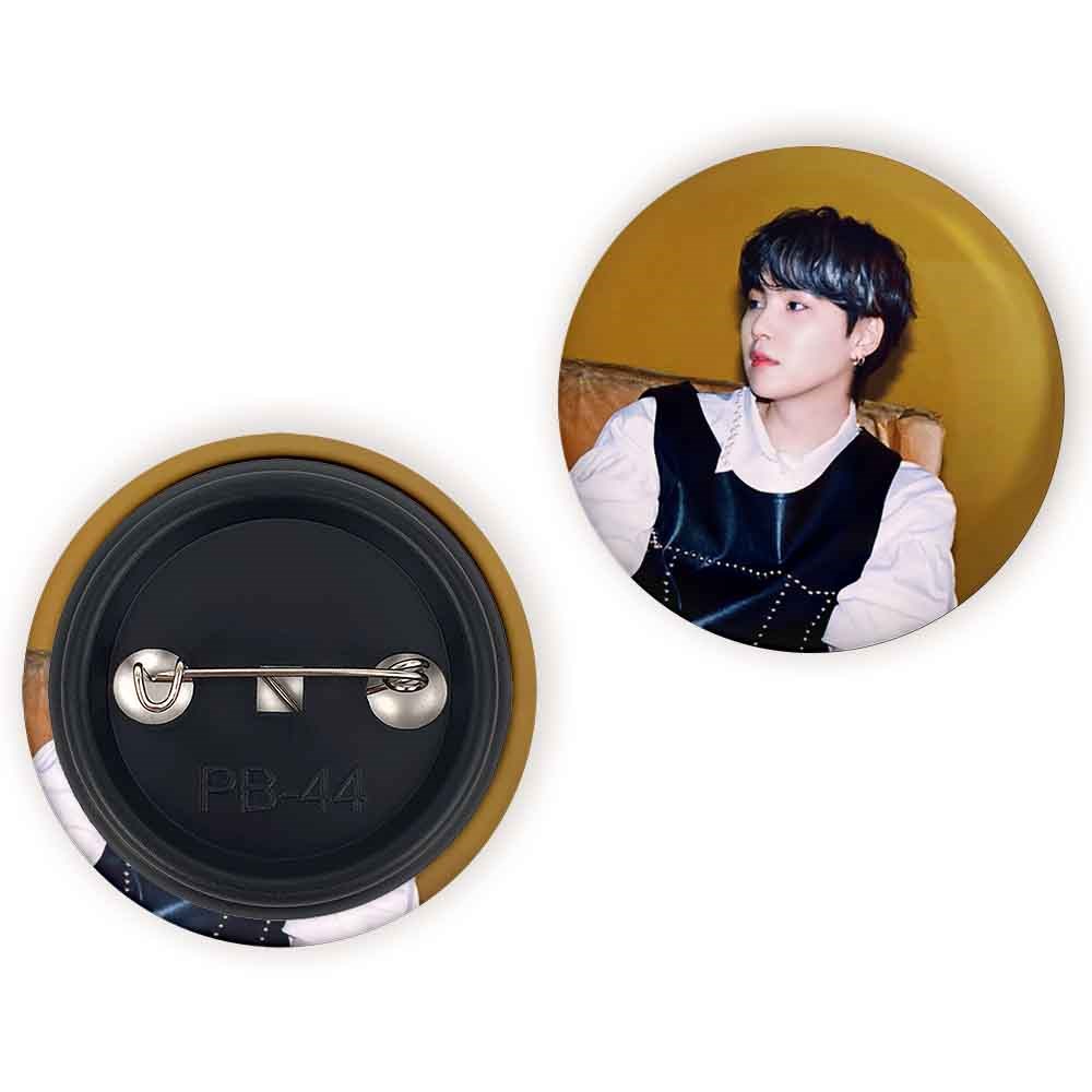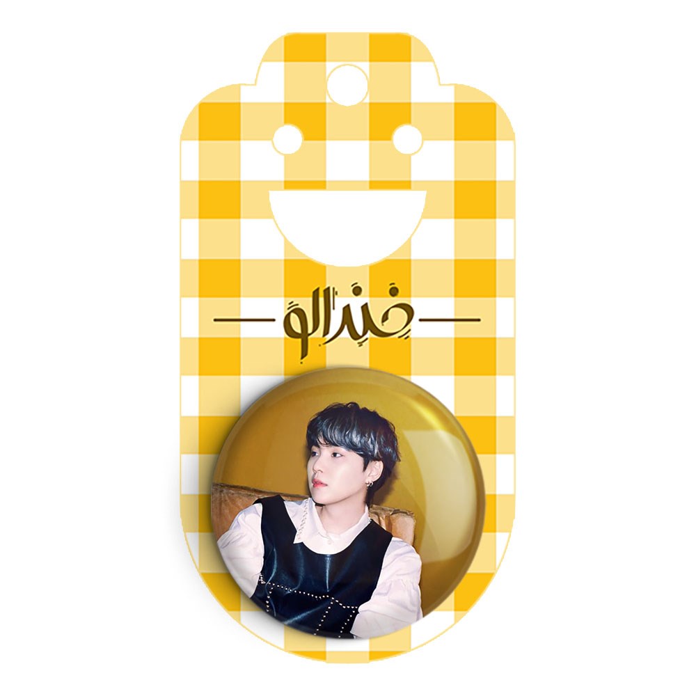 پیکسل 44 میلی متری شوگا Suga گروه بی تی اس BTS خندالو با روکش سلفون حرارتی مات مخملی ضدخش و قطعه پشتی رنگی تولید شده است.پلاستیکی پشت پیکسل با سوزن یک تکه ثابت و بدون لغزش و جا به جایی، ایستایی بسیار بهتری نسبت به پشتی فلزی پیکسل دارند که این مهم در تولید این محصول نیز رعایت شده است.