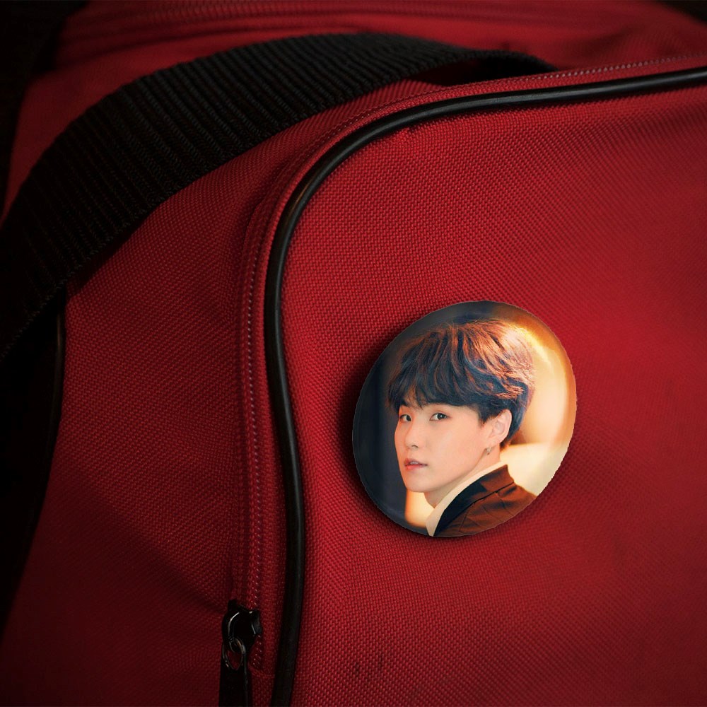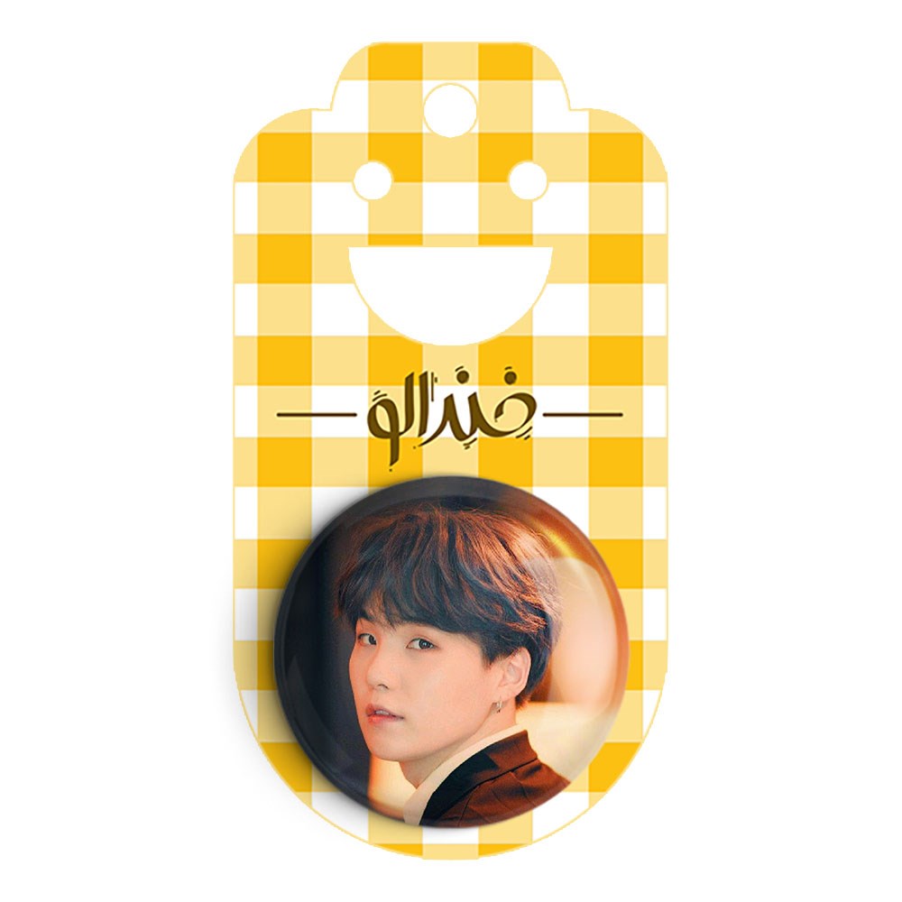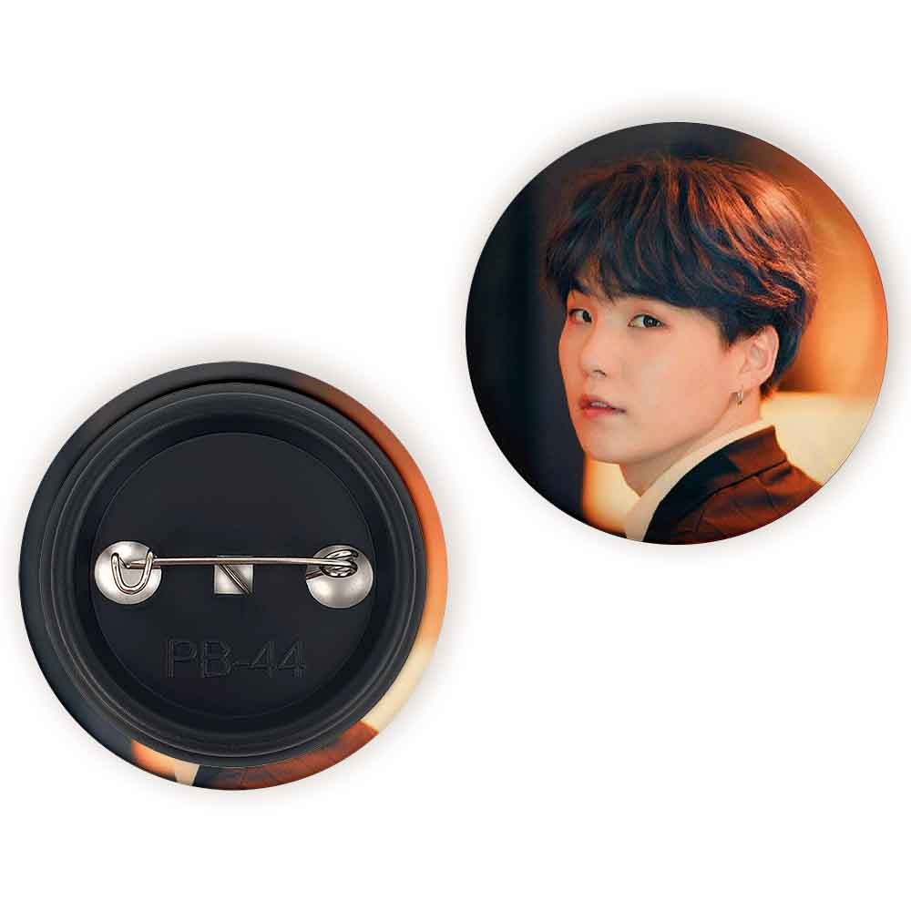 پیکسل 44 میلی متری شوگا Suga گروه بی تی اس BTS خندالو با روکش سلفون حرارتی مات مخملی ضدخش و قطعه پشتی رنگی تولید شده است.پلاستیکی پشت پیکسل با سوزن یک تکه ثابت و بدون لغزش و جا به جایی، ایستایی بسیار بهتری نسبت به پشتی فلزی پیکسل دارند که این مهم در تولید این محصول نیز رعایت شده است.