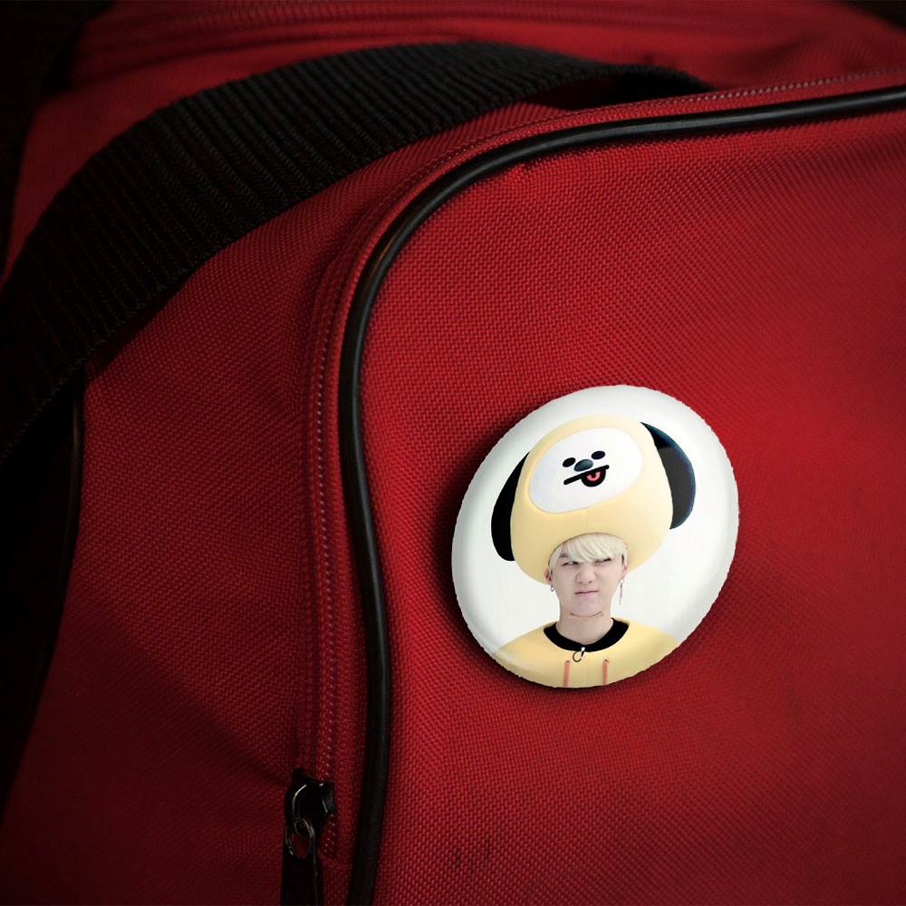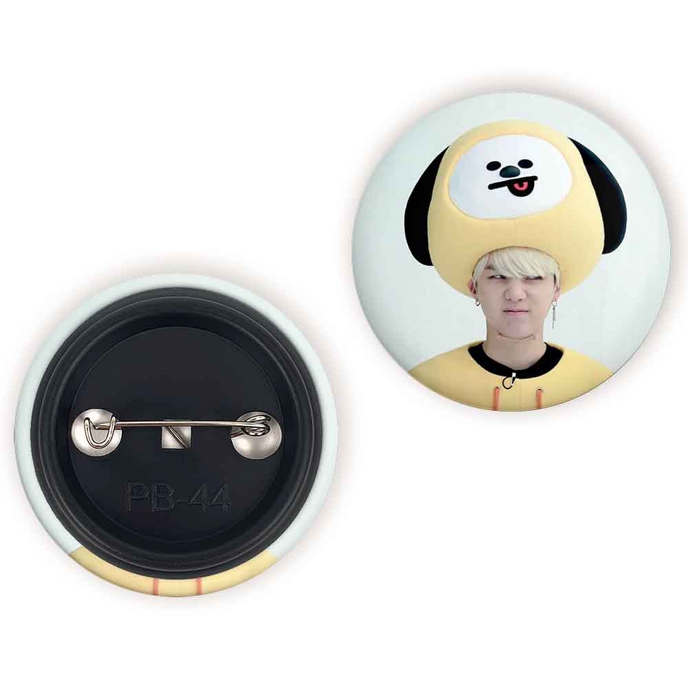 پیکسل 44 میلی متری شوگا Suga گروه بی تی اس BTS خندالو با روکش سلفون حرارتی مات مخملی ضدخش و قطعه پشتی رنگی تولید شده است.پلاستیکی پشت پیکسل با سوزن یک تکه ثابت و بدون لغزش و جا به جایی، ایستایی بسیار بهتری نسبت به پشتی فلزی پیکسل دارند که این مهم در تولید این محصول نیز رعایت شده است.