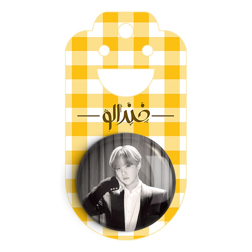 پیکسل 44 میلی متری شوگا Suga گروه بی تی اس BTS خندالو با روکش سلفون حرارتی مات مخملی ضدخش و قطعه پشتی رنگی تولید شده است.پلاستیکی پشت پیکسل با سوزن یک تکه ثابت و بدون لغزش و جا به جایی، ایستایی بسیار بهتری نسبت به پشتی فلزی پیکسل دارند که این مهم در تولید این محصول نیز رعایت شده است.