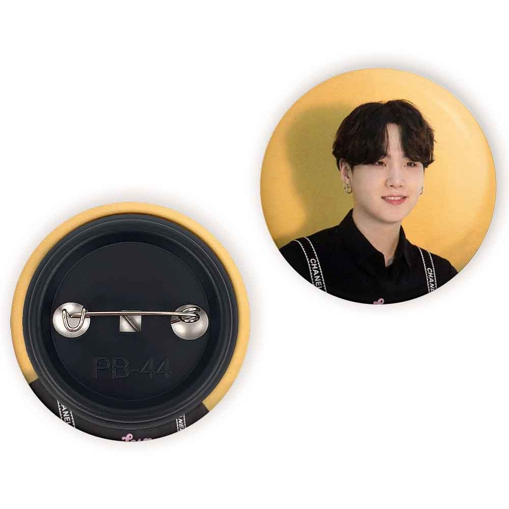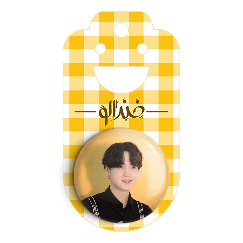 پیکسل 44 میلی متری شوگا Suga گروه بی تی اس BTS خندالو با روکش سلفون حرارتی مات مخملی ضدخش و قطعه پشتی رنگی تولید شده است.پلاستیکی پشت پیکسل با سوزن یک تکه ثابت و بدون لغزش و جا به جایی، ایستایی بسیار بهتری نسبت به پشتی فلزی پیکسل دارند که این مهم در تولید این محصول نیز رعایت شده است.
