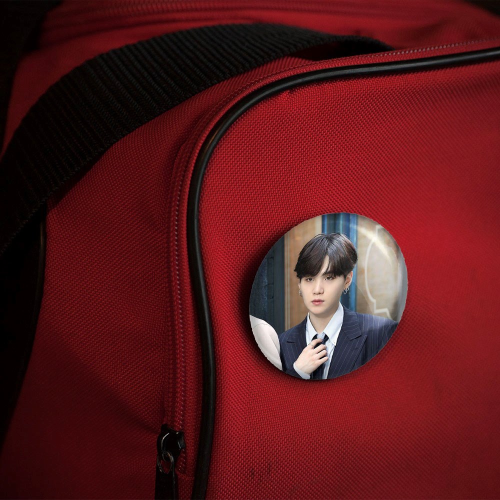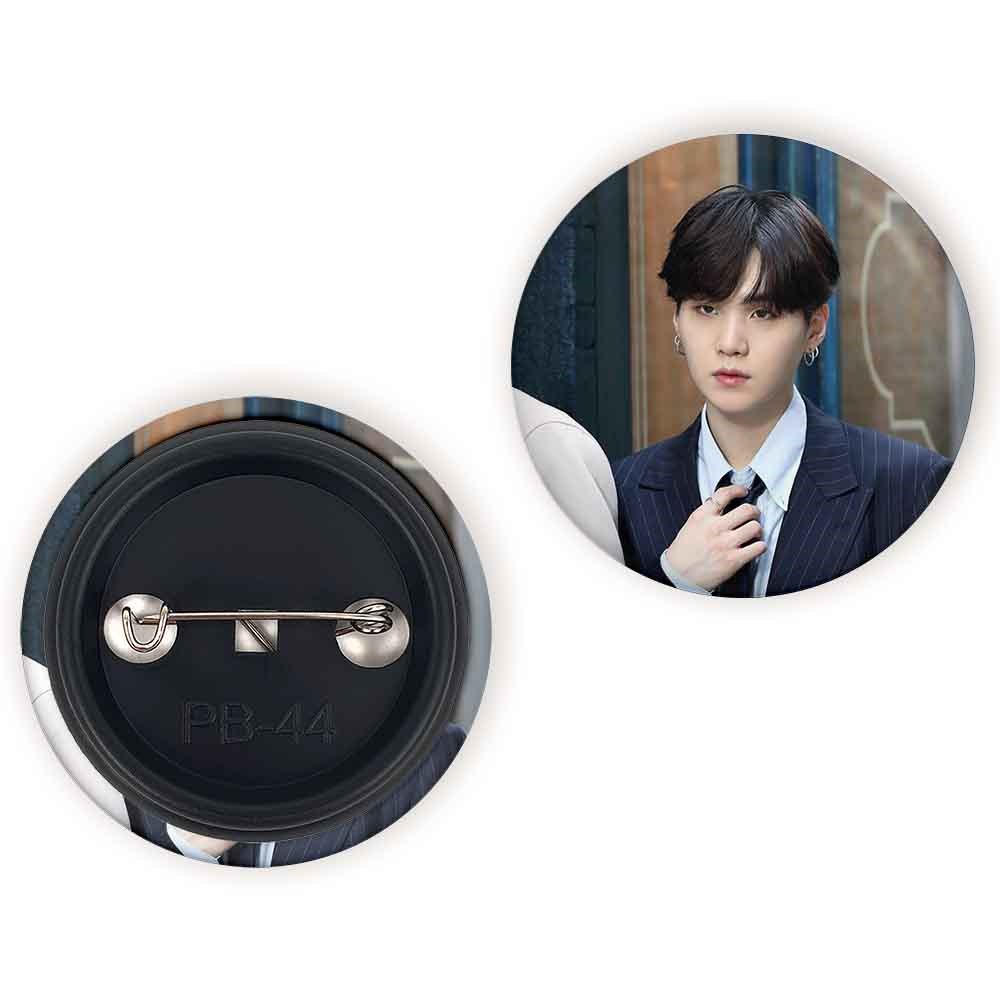 پیکسل 44 میلی متری شوگا Suga گروه بی تی اس BTS خندالو با روکش سلفون حرارتی مات مخملی ضدخش و قطعه پشتی رنگی تولید شده است.پلاستیکی پشت پیکسل با سوزن یک تکه ثابت و بدون لغزش و جا به جایی، ایستایی بسیار بهتری نسبت به پشتی فلزی پیکسل دارند که این مهم در تولید این محصول نیز رعایت شده است.
