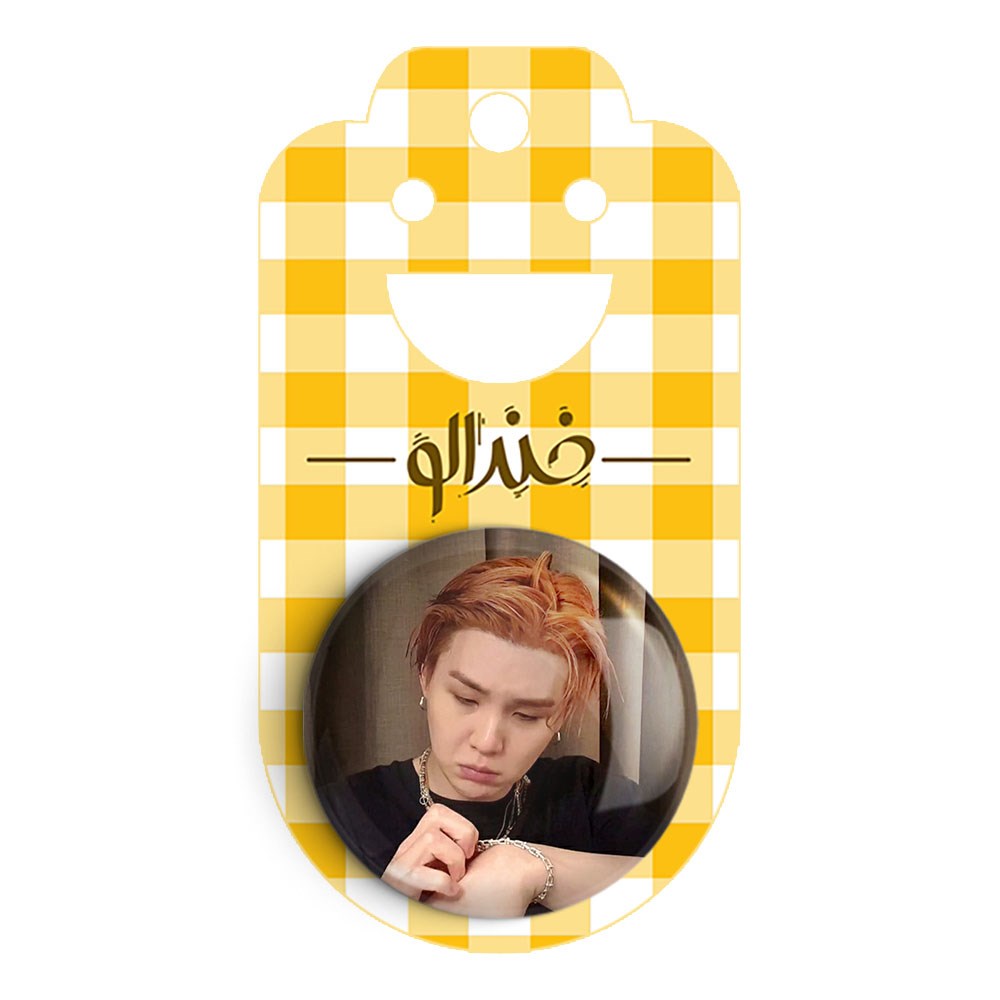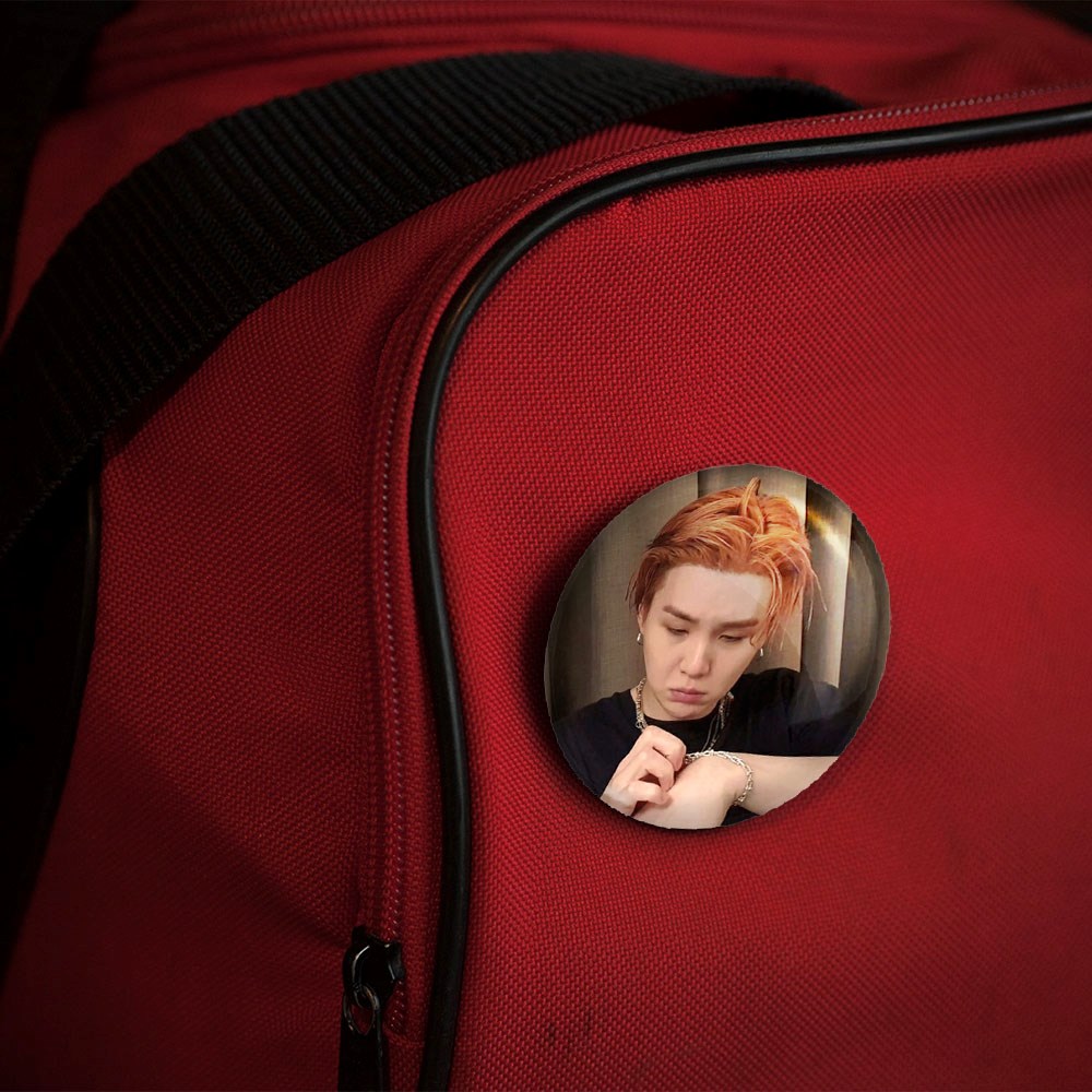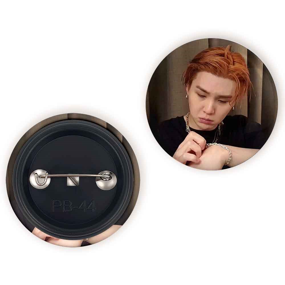 پیکسل 44 میلی متری شوگا Suga گروه بی تی اس BTS خندالو با روکش سلفون حرارتی مات مخملی ضدخش و قطعه پشتی رنگی تولید شده است.پلاستیکی پشت پیکسل با سوزن یک تکه ثابت و بدون لغزش و جا به جایی، ایستایی بسیار بهتری نسبت به پشتی فلزی پیکسل دارند که این مهم در تولید این محصول نیز رعایت شده است.