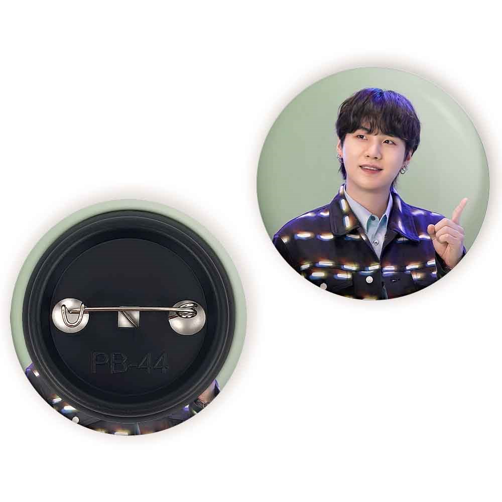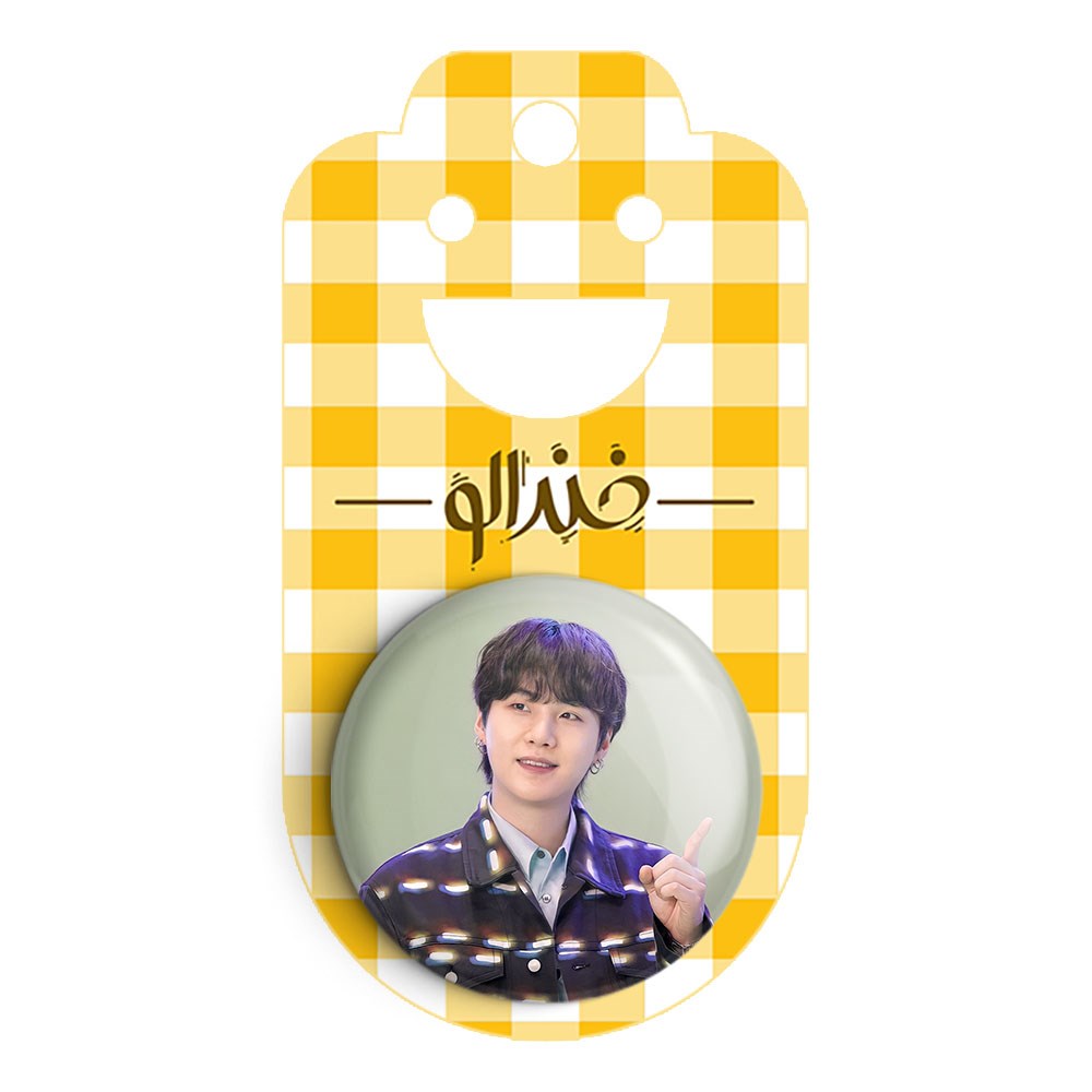 پیکسل 44 میلی متری شوگا Suga گروه بی تی اس BTS خندالو با روکش سلفون حرارتی مات مخملی ضدخش و قطعه پشتی رنگی تولید شده است.پلاستیکی پشت پیکسل با سوزن یک تکه ثابت و بدون لغزش و جا به جایی، ایستایی بسیار بهتری نسبت به پشتی فلزی پیکسل دارند که این مهم در تولید این محصول نیز رعایت شده است.