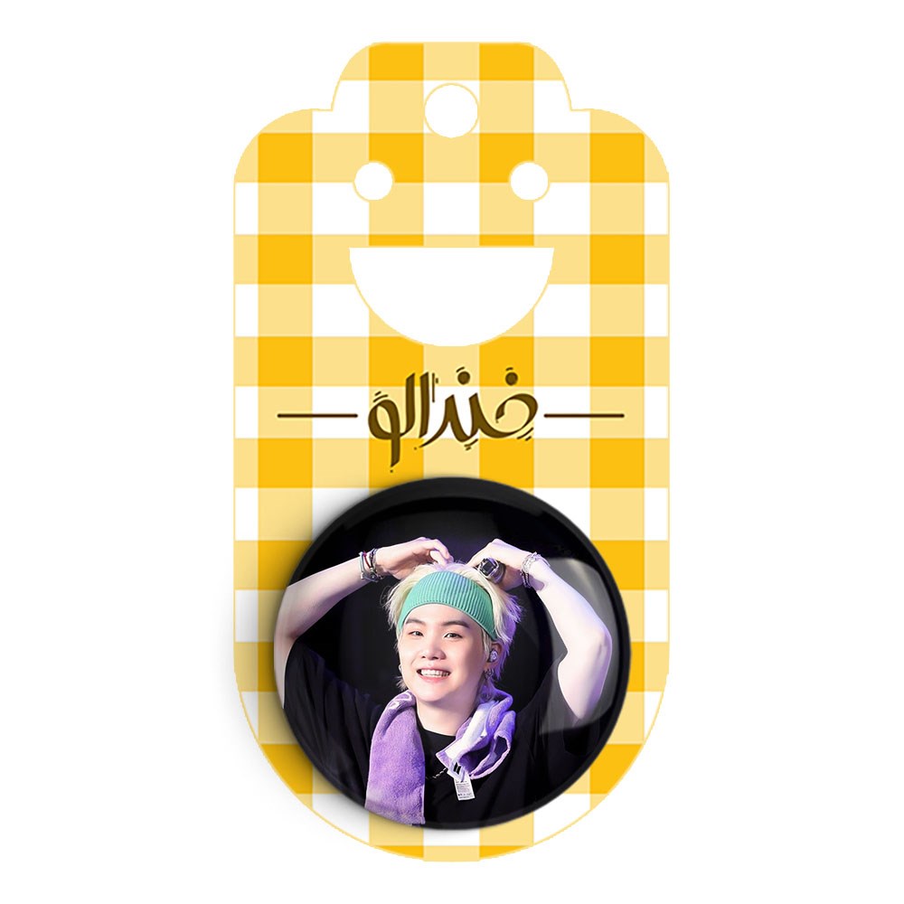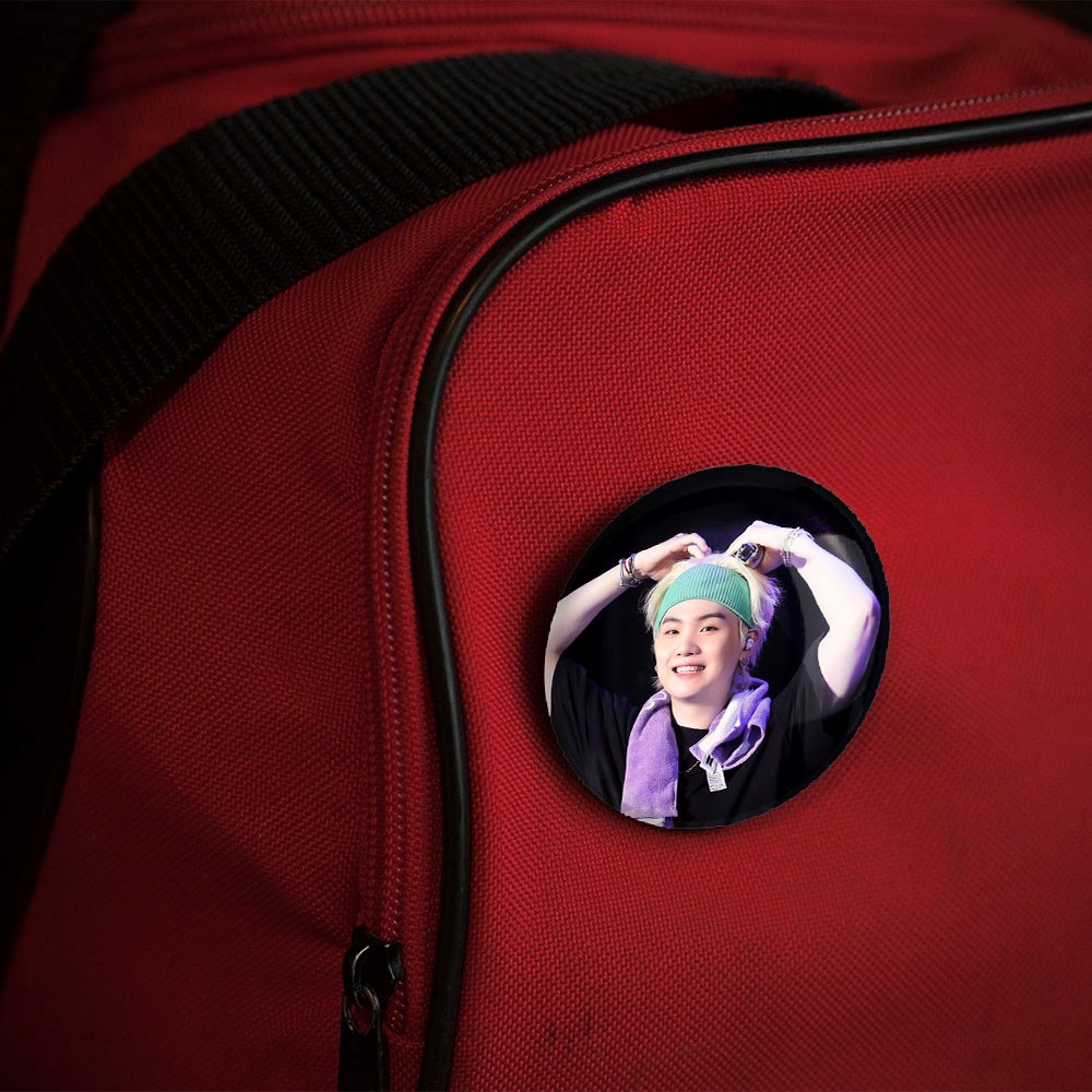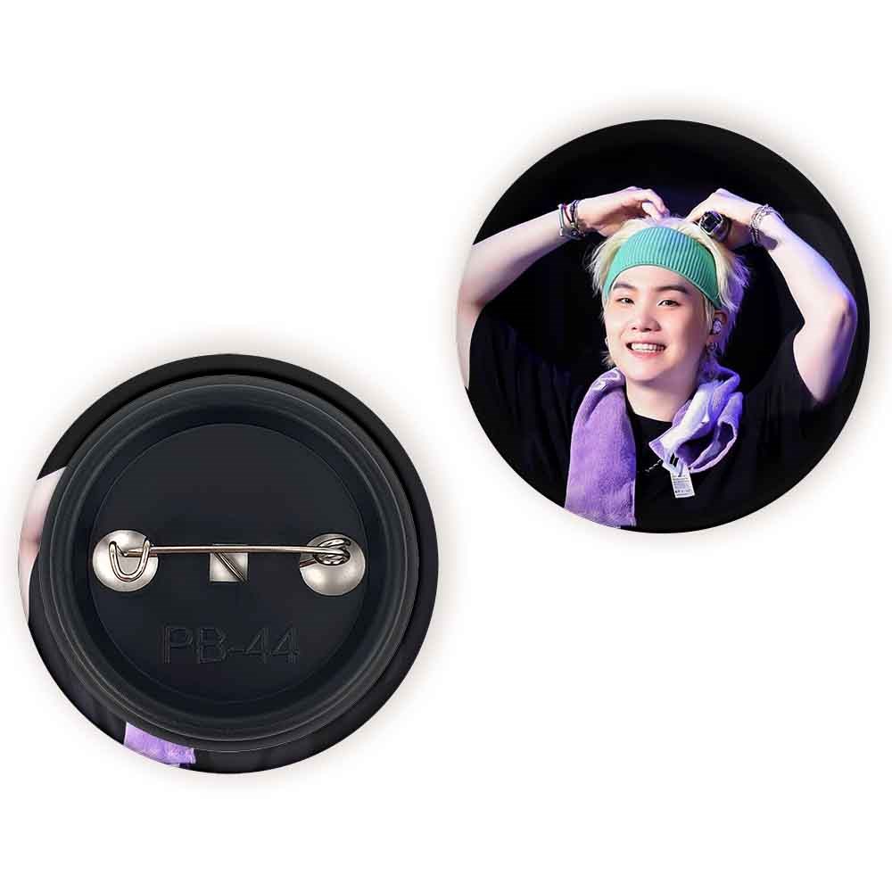 پیکسل 44 میلی متری شوگا Suga گروه بی تی اس BTS خندالو با روکش سلفون حرارتی مات مخملی ضدخش و قطعه پشتی رنگی تولید شده است.پلاستیکی پشت پیکسل با سوزن یک تکه ثابت و بدون لغزش و جا به جایی، ایستایی بسیار بهتری نسبت به پشتی فلزی پیکسل دارند که این مهم در تولید این محصول نیز رعایت شده است.