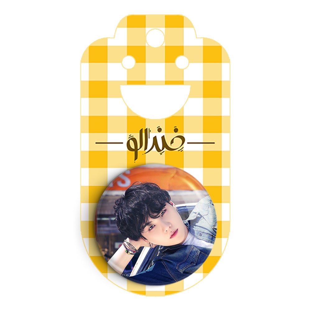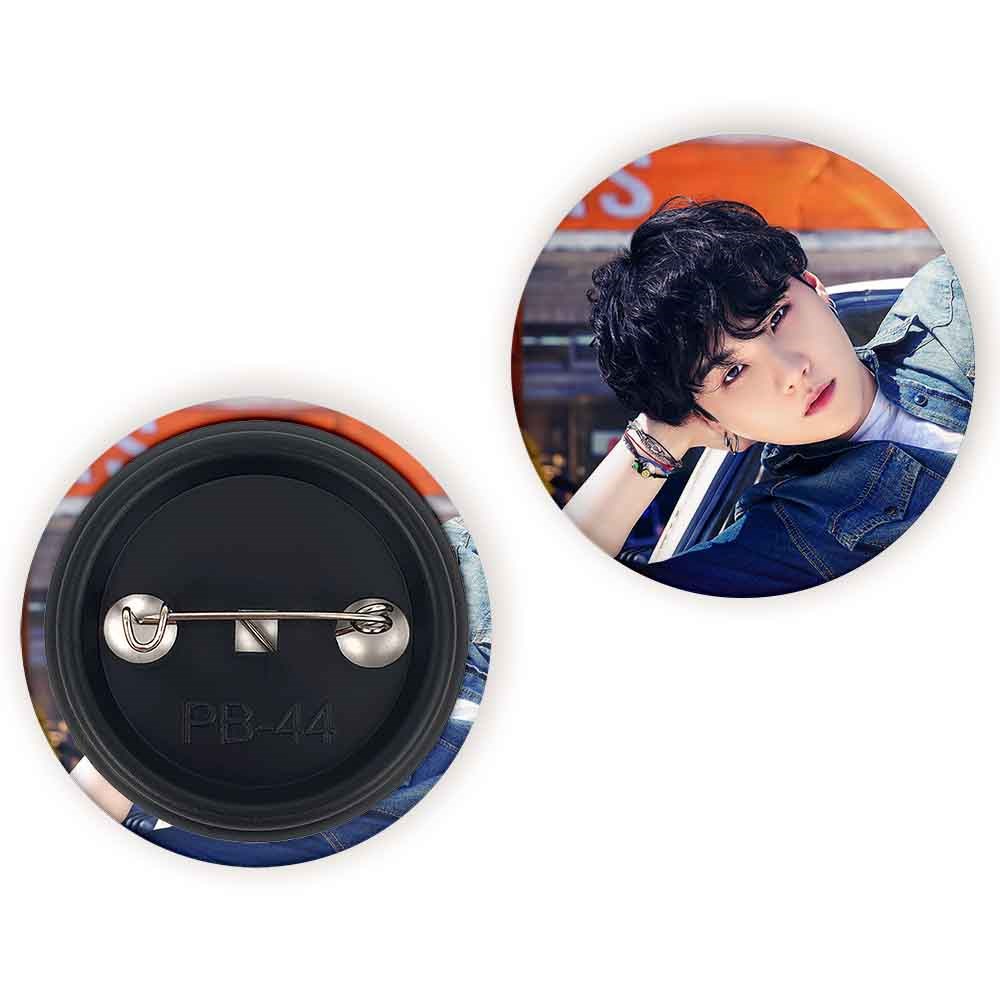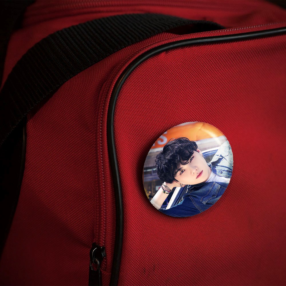 پیکسل 44 میلی متری شوگا Suga گروه بی تی اس BTS خندالو با روکش سلفون حرارتی مات مخملی ضدخش و قطعه پشتی رنگی تولید شده است.پلاستیکی پشت پیکسل با سوزن یک تکه ثابت و بدون لغزش و جا به جایی، ایستایی بسیار بهتری نسبت به پشتی فلزی پیکسل دارند که این مهم در تولید این محصول نیز رعایت شده است.